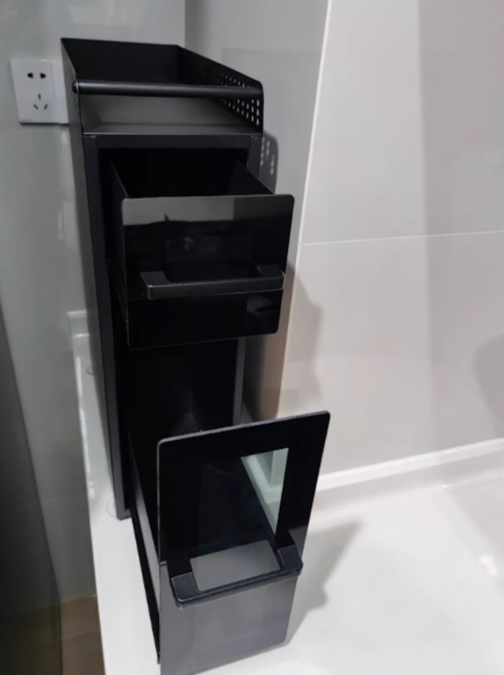 完成品 金属製 ナイトテーブル スチール 幅25cm 省スペース 寝室用 ベッドサイドテーブル サイドキャビネット 収納ラック サイドボード ブラック 一段引き出し/二段引き出し コンパクト