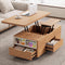 Casaconer | テーブル・ローテーブル・サイドテーブル・センターテーブル・昇降テーブル・多機能テーブル・幅120cm・高さ48~67cm・多機能デザイン・無垢材・収納ワゴン・キャスター付き・在宅ワーク・コンパクト家具・一人暮らし