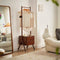 ■POINT1 高級感あふれる天然木仕様 本体には天然木を使用しており、自然な木目と温もりを感じられるデザイン。上質なインテリアに調和します。 ■POINT2 衣帽架+サイドチェスト一体型 掛ける・置く・収納の3役をこなす実用的な構造で、衣類と小物を一箇所にまとめられます。ベッドサイドにも最適。 ■POINT3 スムーズに移動できるキャスター付き 脚部には移動がラクなキャスターを採用。掃除や模様替え時にもストレスなく使える可動式設計です。 ■POINT4 2杯の引き出しで収納力アップ 本体には深さ15cmの引き出しが2杯ついており、衣類小物や雑貨類をすっきり収納できます。 ■POINT5 囲み縁デザインで物が落ちにくい 天板の縁には立ち上がりがあり、置いた物が滑り落ちにくく、安全性と実用性を兼ね備えています。 ■POINT6 丸みのあるフレームで安心設計 角部分には丸み加工が施されており、見た目の柔らかさとお子様にも安心な設計が両立されています。 ■POINT7 フックは優しい丸型形状 掛け部分は丸みを帯びたフック形状で、衣類を傷めにくく、毎日の使用にも配慮されています。 ■POINT8 161cmの高さで衣類も余裕収納 掛けスペースの高さは約105cm、全体高さ161cmでシャツやカーディガンをすっきり吊るせます。 ■POINT9 省スペースに収まるスリム設計 幅50cm・奥行40cmのコンパクトサイズで、狭めのスペースにもすっきり収まり、圧迫感を与えません。 ■POINT10 5年保証付きで安心の品質 長期使用にも耐える高品質な製品で、5年間の保証が付いており、安心してお使いいただけます。 |