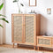 扉には通気性に優れたラタン調の格子パネルを採用。湿気がこもりにくく,靴収納にもぴったりです。