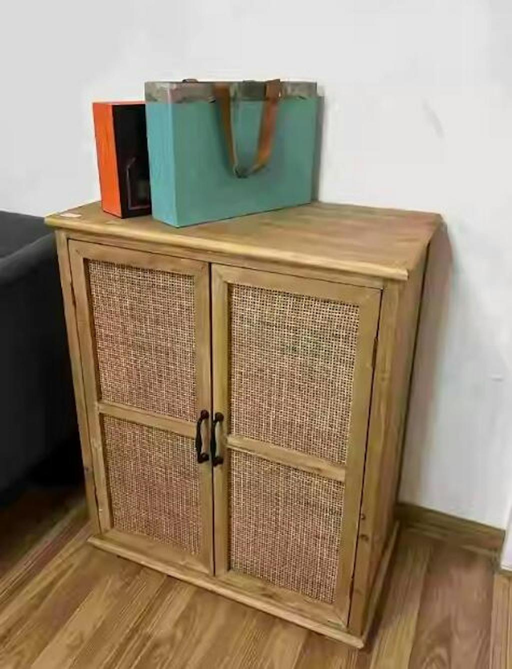 キャビネット・サイドボード・ラタン・収納・レトロ・リビング・ナチュラル・無垢材