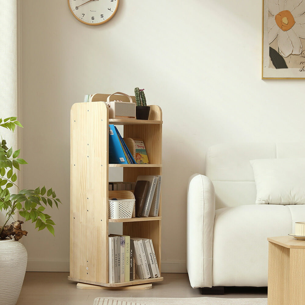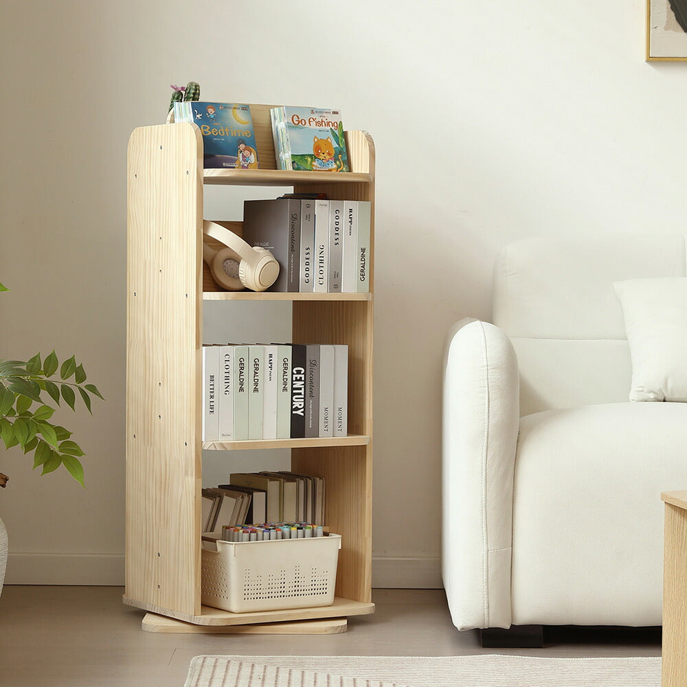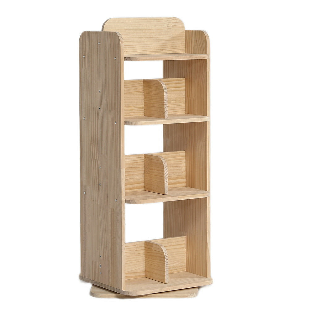 本棚 回転式 天然木 パイン材 ブックシェルフ A4対応 絵本棚 図鑑対応 コミック収納 360度回転 スリム 省スペース 子供部屋 おしゃれ 回転ラック 大容量 7日内出荷
