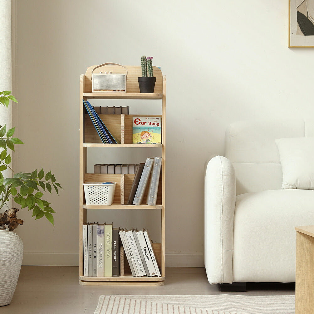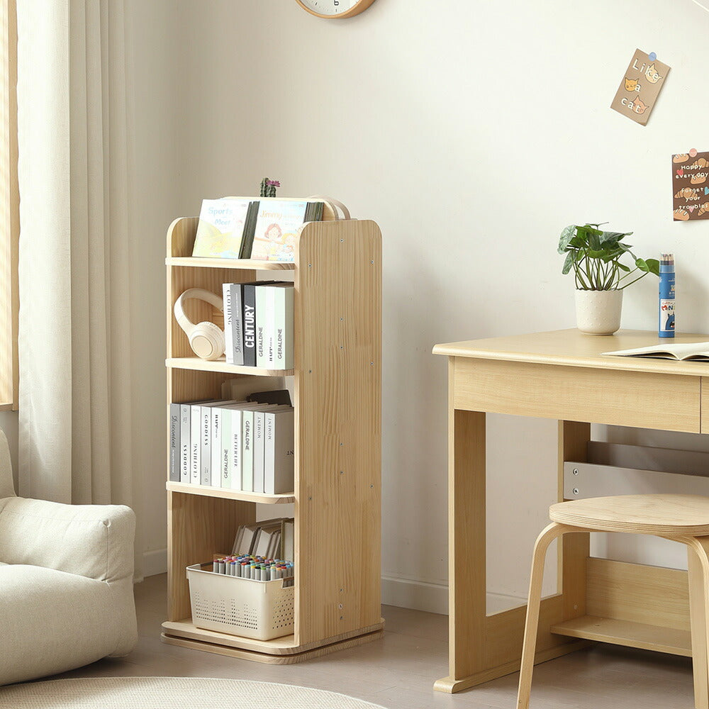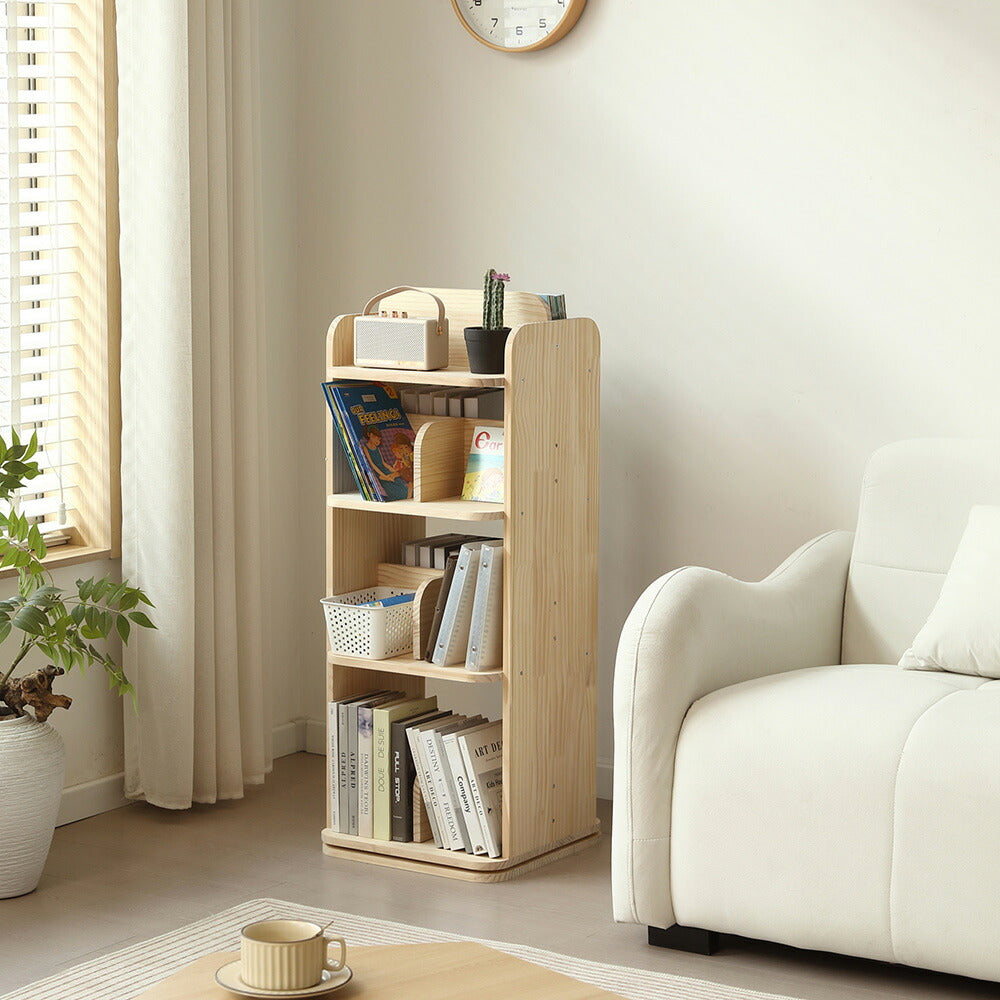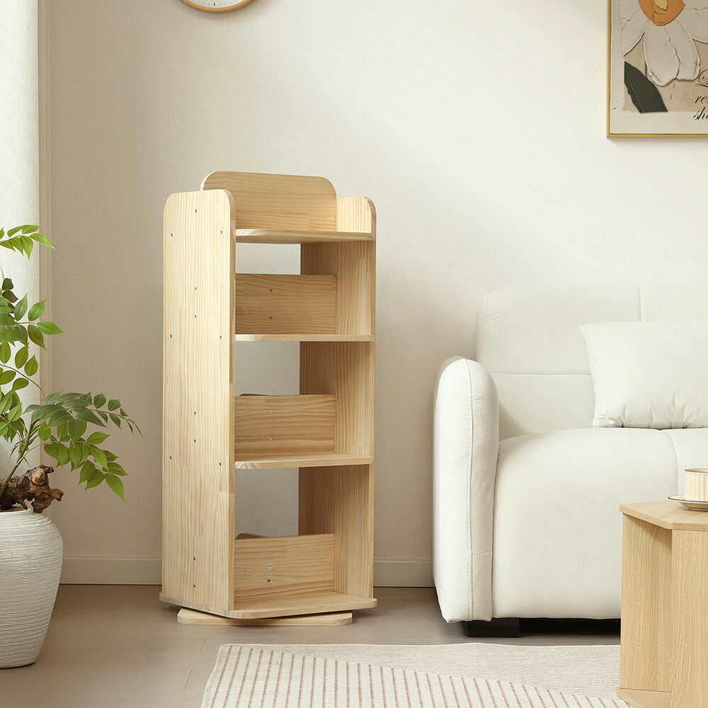 本棚 回転式 天然木 パイン材 ブックシェルフ A4対応 絵本棚 図鑑対応 コミック収納 360度回転 スリム 省スペース 子供部屋 おしゃれ 回転ラック 大容量 7日内出荷