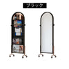Casaconer | 姿見ミラー付きマガジンラック・全身鏡付き収納・キャスター付き・スタンドミラー・書類収納付き・移動式ワゴン・回転式ミラー・木製・ウォールナット/ナチュラル/ブラック・おしゃれ・一人暮らし・北欧風
