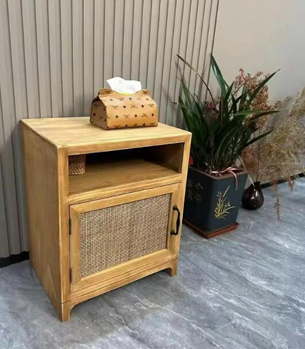 ナイトテーブル,サイドテーブル,ラタン,収納,リビング,寝室,ベッドルーム,ナチュラル,無垢材,風合い