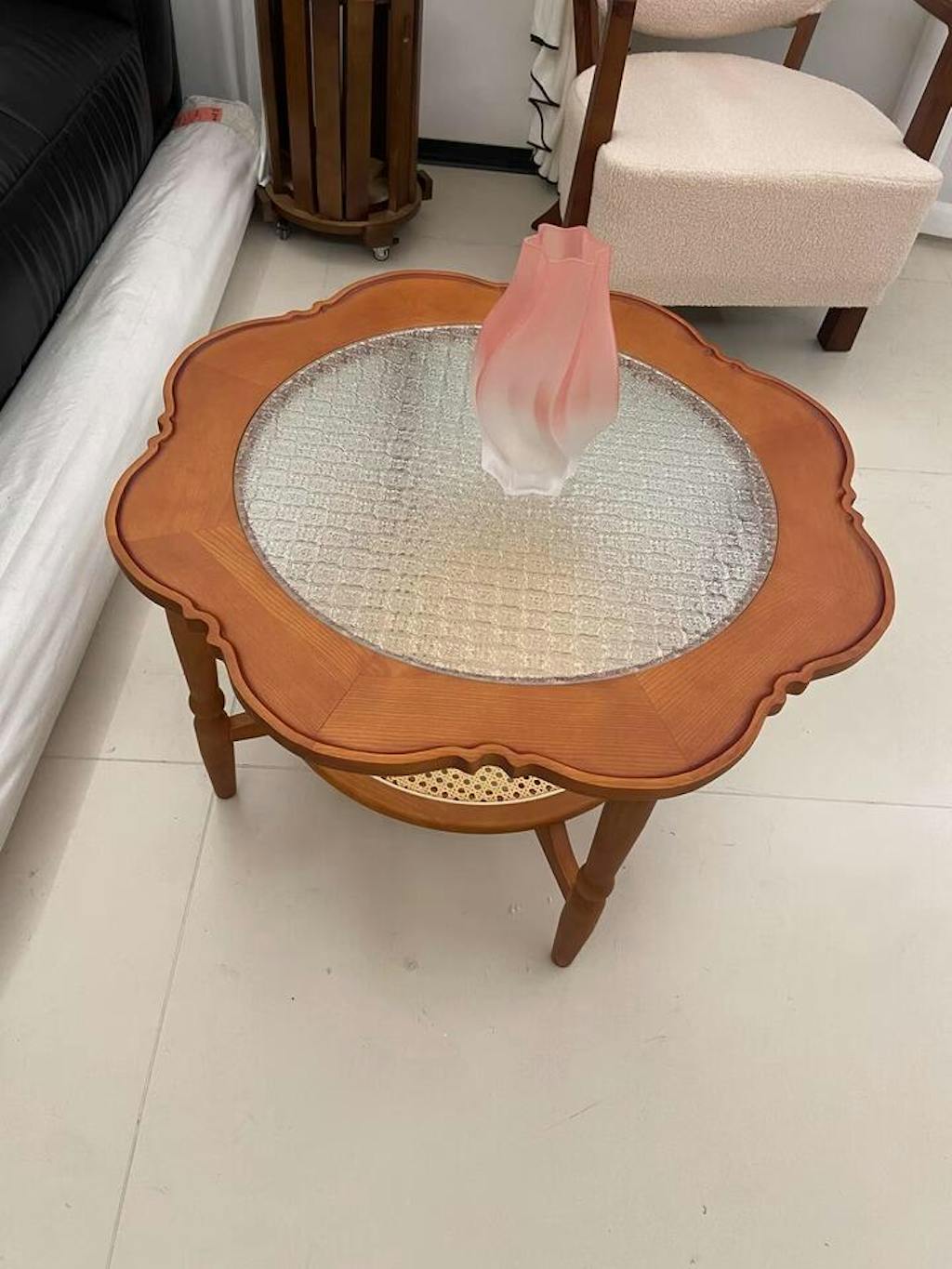 ラタン、無垢材、ガラス |