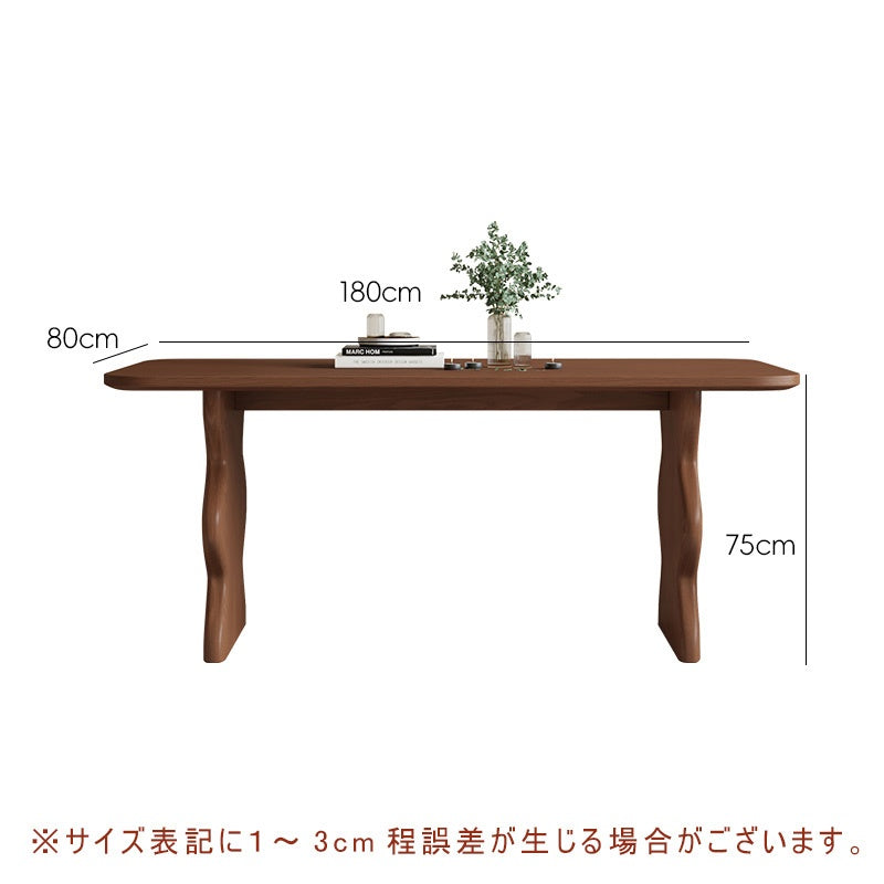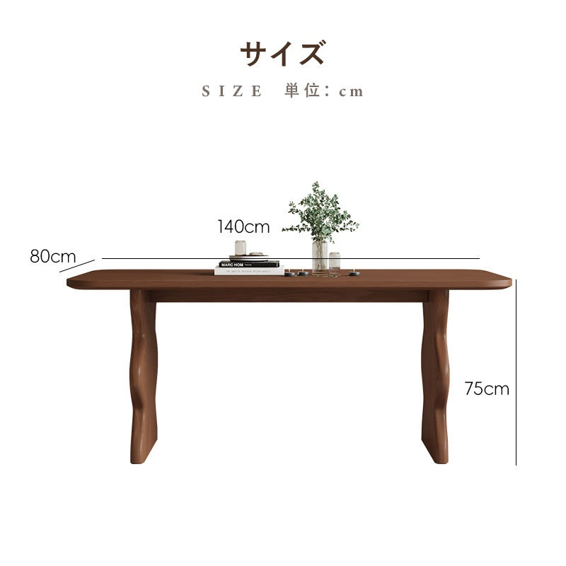 商品名 ダイニングテーブル単品 商品番号 anqiujj-table-001 生産国 中国 組立状態 要組立品(組立説明書を同梱発送いたします) 素材 天然木 サイズ(約) ・幅140×奥行80×高さ75cm ・幅160×奥行80×高さ75cm ・幅180×奥行80×高さ75cm ポイント ■POINT1 長方形デザインで省スペースに設置可能 小戸型のダイニングやリビングでも使いやすく、壁際に寄せて配置できるため、空間を有効活用できます。 ■POINT2 安定感のある脚部設計 個性的な脚部デザインは見た目だけでなく、しっかりとした安定感を確保し、食事や作業時にも安心して使用できます。 ■POINT3 幅広い用途に対応 日常の食事はもちろん、来客時の会食やワークスペースとしても使える多用途なテーブルです。 ■POINT4 座りやすい高さ設計 チェアと組み合わせても快適に使える高さで設計されており、長時間の食事や作業でも疲れにくい仕様です。 ■POINT5 複数人での使用に最適 家族や友人との団らんにぴったりで、4人掛けから6人掛けまで対応可能なサイズ感です。 ■POINT6 お手入れ簡単な天板 フラットな天板は拭き掃除がしやすく、日常の清潔維持も手軽に行えます。 ■POINT7 どんな空間にも調和 リビング、ダイニング、書斎など幅広いシーンに馴染みやすいシンプルな設計です。 ■POINT8 家族の団らんを支える実用性...