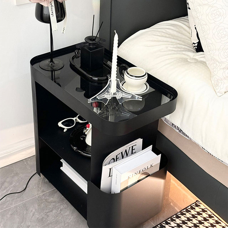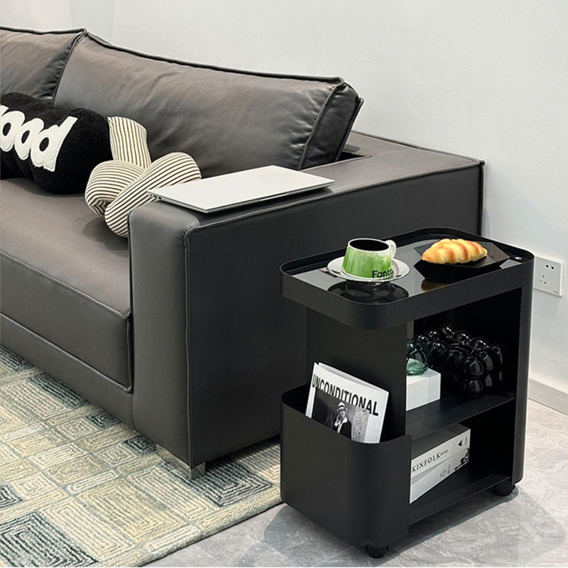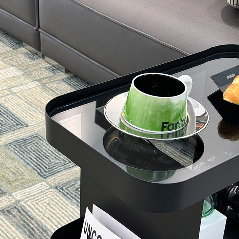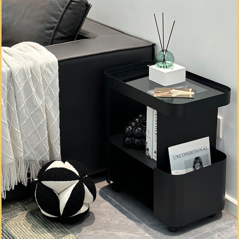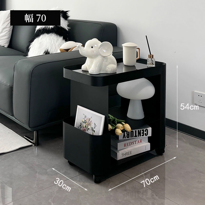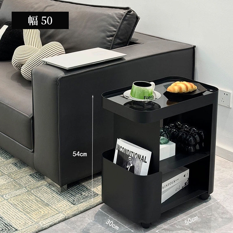 キャスター付き サイドテーブル ソファサイドワゴン 収納ラック ガラス天板 スリム 移動式 幅50cm/60cm/70cm リビング ソファ横 ベッドサイド 省スペース ブラック