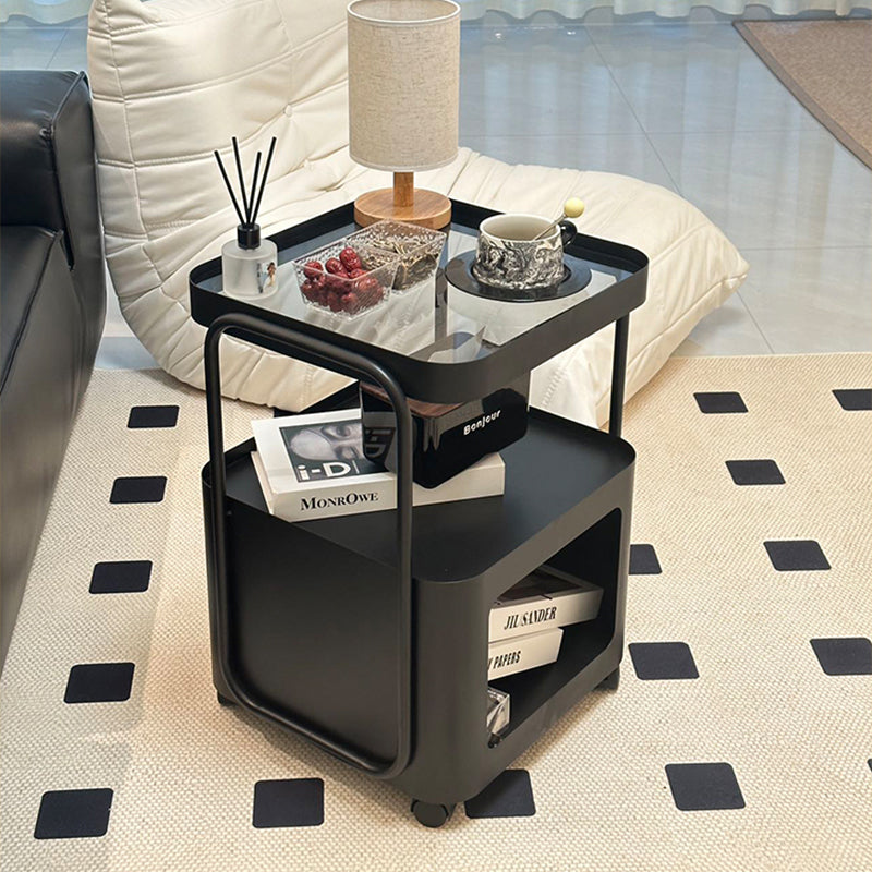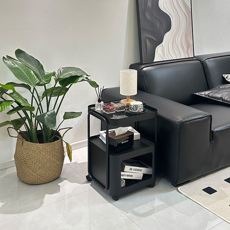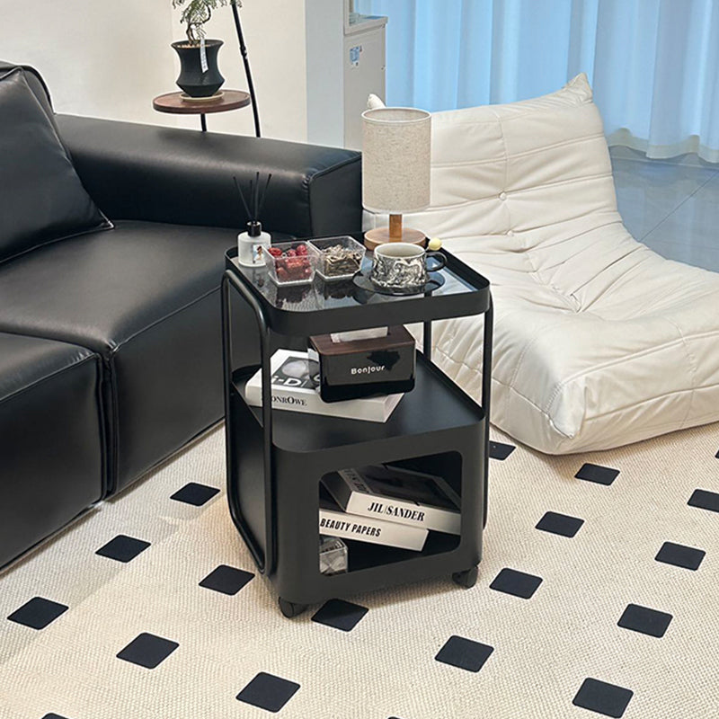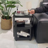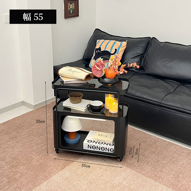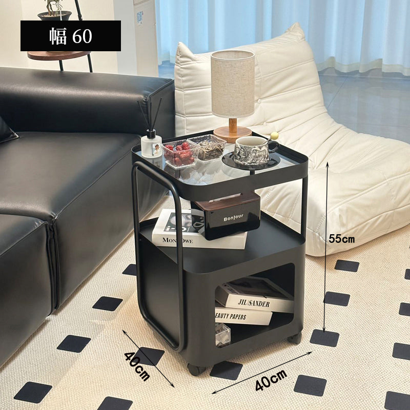 キャスター付き サイドテーブル ソファサイドワゴン 収納ラック ガラス天板 スチールフレーム 移動式 小型テーブル ベッドサイド 省スペース 幅40cm/55cm 多段収納 ブラック
