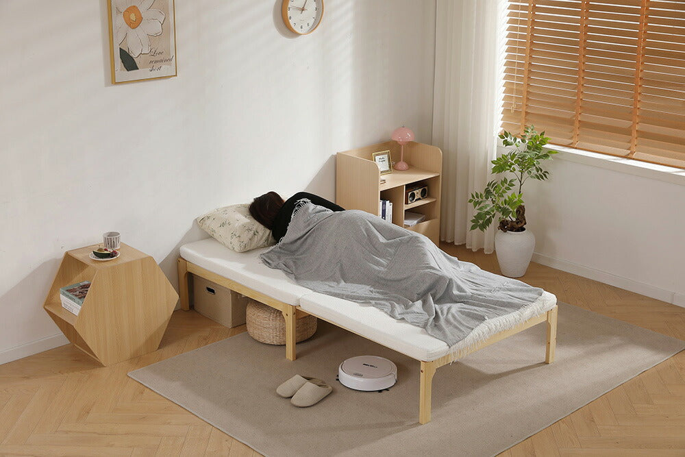 昼はソファベンチとしてくつろぎの空間に、夜はすのこベッドとして快適な寝室に。1台で生活空間を切り替えられるデイベッドは、限られたスペースでも機能的で快適な暮らしを実現します。