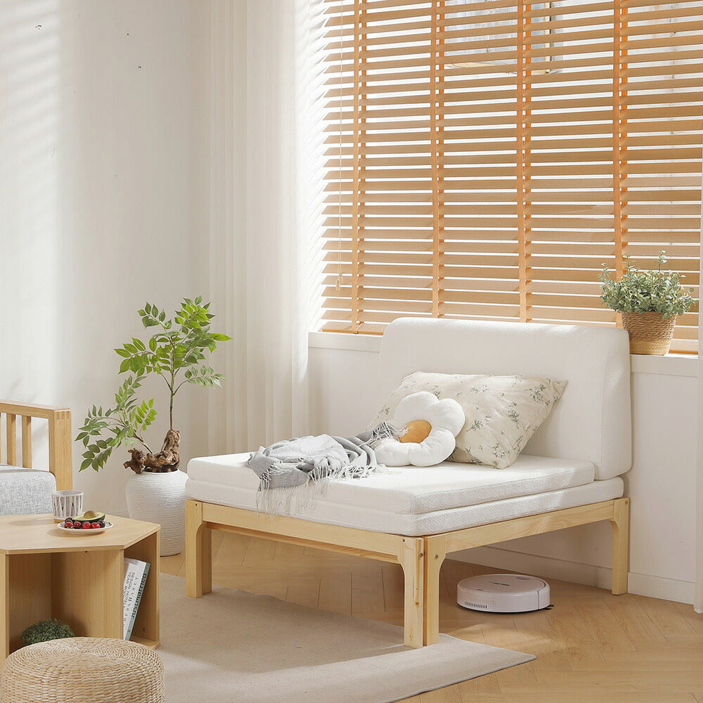 【ナチュラル/ホワイト/ブラウン】デイベッド ソファベッド シングル 木製 伸長式ベッド 変形ベッド ベッドフレーム 伸縮 下収納 おしゃれ 2way 天然木 来客用 ナチュラル リビング パイン材 すのこ仕様 リビング 寝室