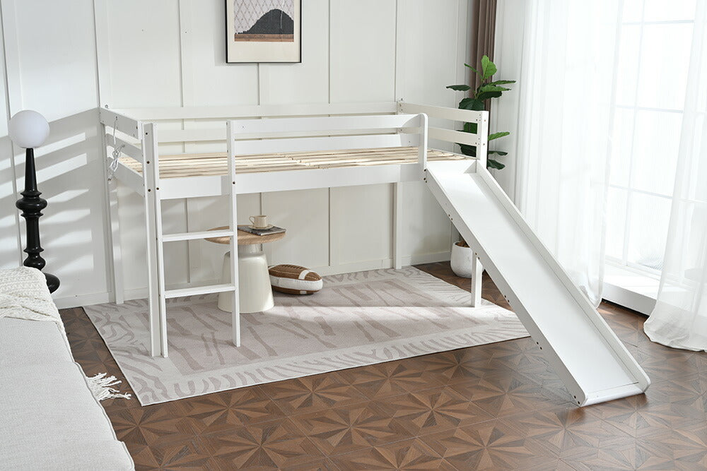 【ナチユラル/ホワイト】ロフトベッド パイプベッド シングル ハイタイプ 滑り台付き はしご付き 子供用 2色展開 高さ120cm システムベッド 収納 北欧風 一人暮らし 木材 耐震 ベッド 子供部屋 おしゃれ 7日内出荷