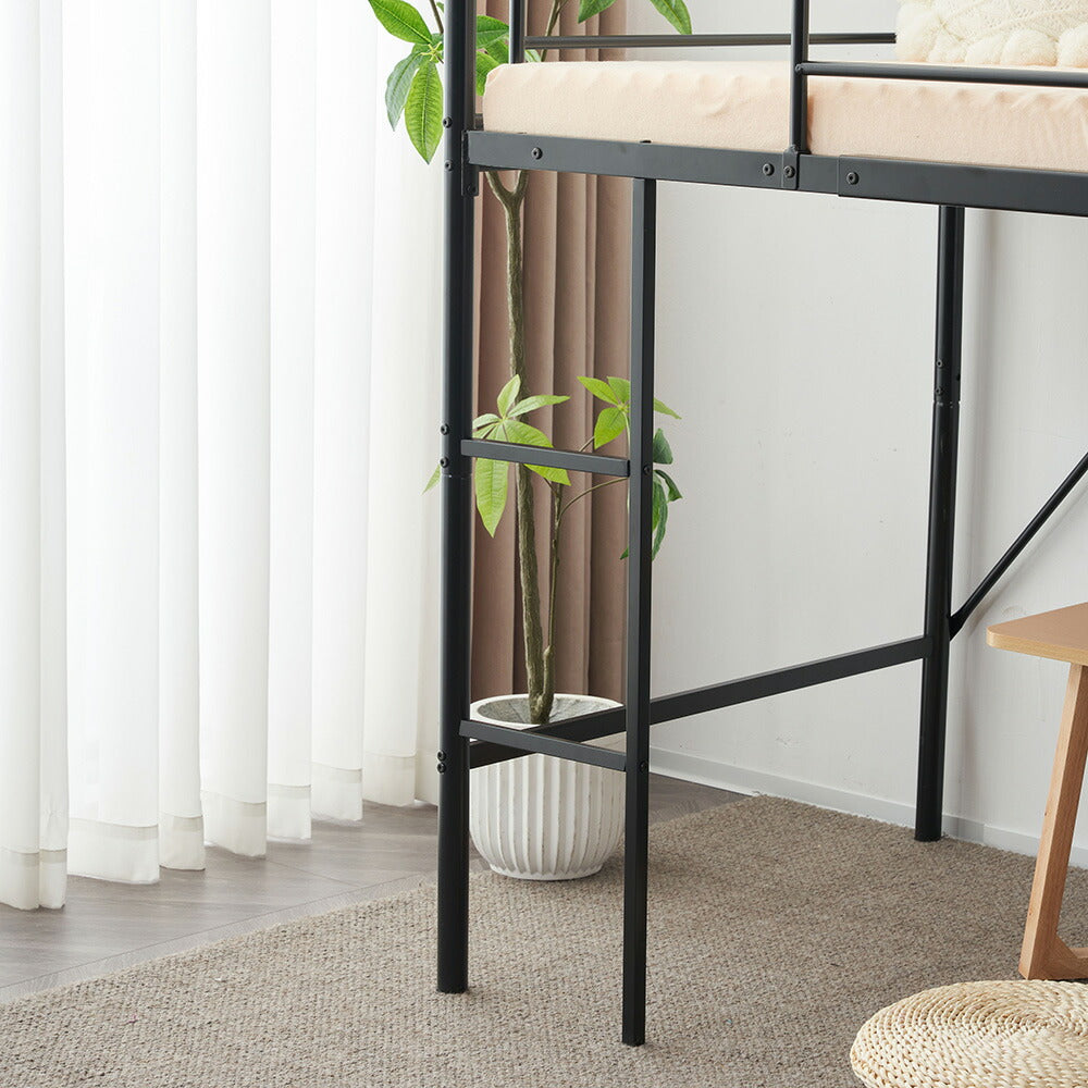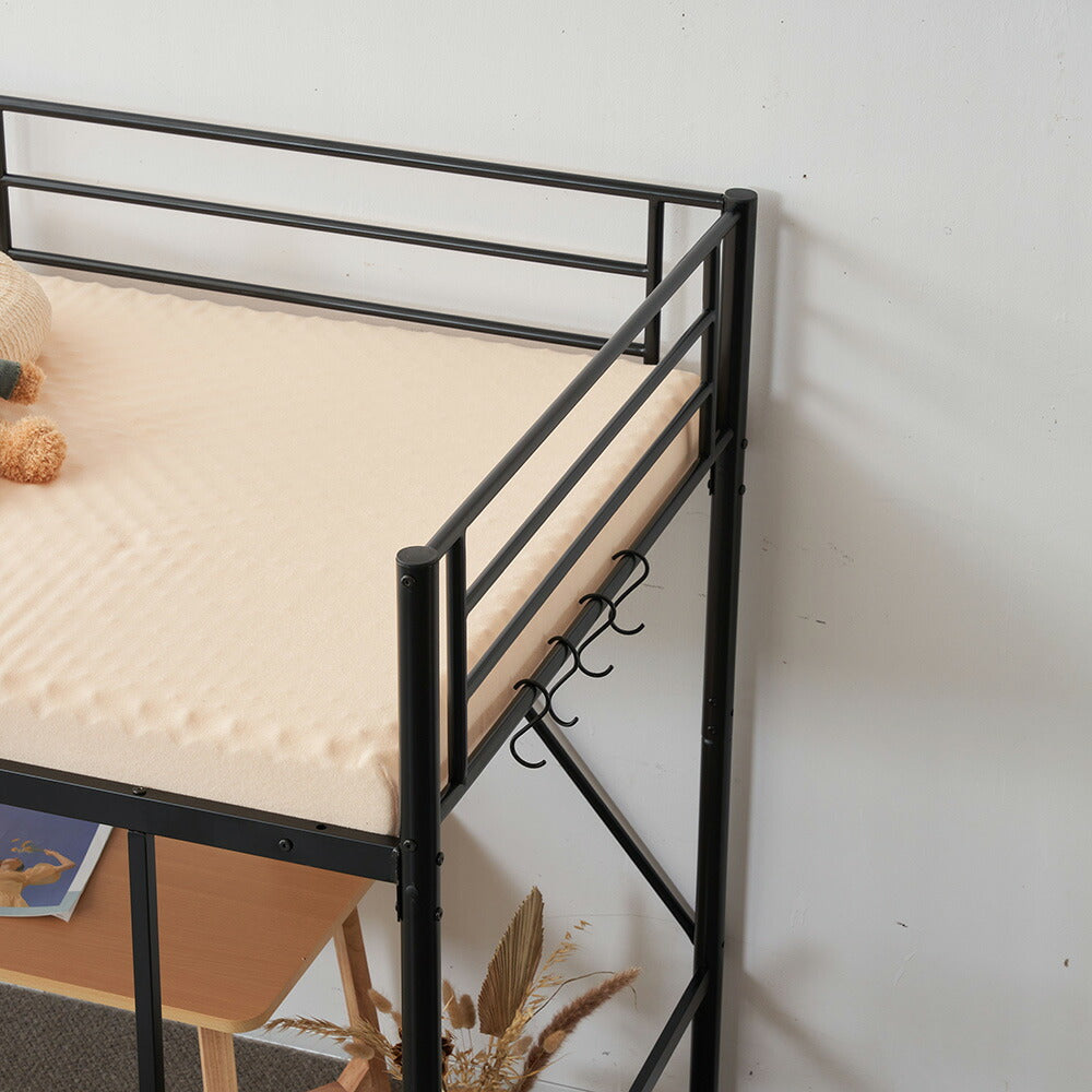 【ブラック/ホワイト】ロフトベッド パイプベッド シングル ハイタイプ 大人用 ブラック 黒 白 テーブル付き はしご付き 高さ136cm システムベッド スチール 北欧風 一人暮らし スチール 耐震 ベッド 子供部屋