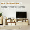 ◆商品説明 ■POINT1 伸縮・レイアウト自由なテレビボード 幅の伸縮に加え、角度調整や配置の入れ替えも自由にできる設計。お部屋の広さや間取りに合わせてぴったり設置でき、引っ越しや模様替えにも柔軟に対応できる、使い勝手の良い多機能テレビボードです。 ■POINT2 左右組み換え可能で設置自在 組立時に左右のレイアウトを選択できるため、壁の位置や生活動線に合わせた配置が可能。スペースを無駄なく活用でき、お部屋のレイアウトや使い方に合わせて快適な環境を作れます。 ■POINT3 角度調整で多彩な使い方に対応 直線配置はもちろん、コーナー設置など角度を自由に調整可能。テレビ台としてだけでなく、パソコンを置いてコーナーデスクや作業スペースとしても活用でき、暮らしの幅が広がります。 ■POINT4 整理しやすい充実の収納力 合計8カ所の収納スペースを備え、扉付き収納とオープンスペースを使い分け可能。AV機器や小物、A4サイズの雑誌や書類までしっかり収納でき、リビング周りをすっきり整えます。 ■POINT5 機能性と美しさを兼ね備えたディテール 背板のないオープン設計で熱がこもりにくく、機器のトラブルを軽減。表面は水やキズに強いメラミン加工でお手入れも簡単です。さらにプッシュラッチ仕様で軽く押すだけで開閉でき、ネジ穴隠しシール付きで見た目もすっきり仕上がります。 |