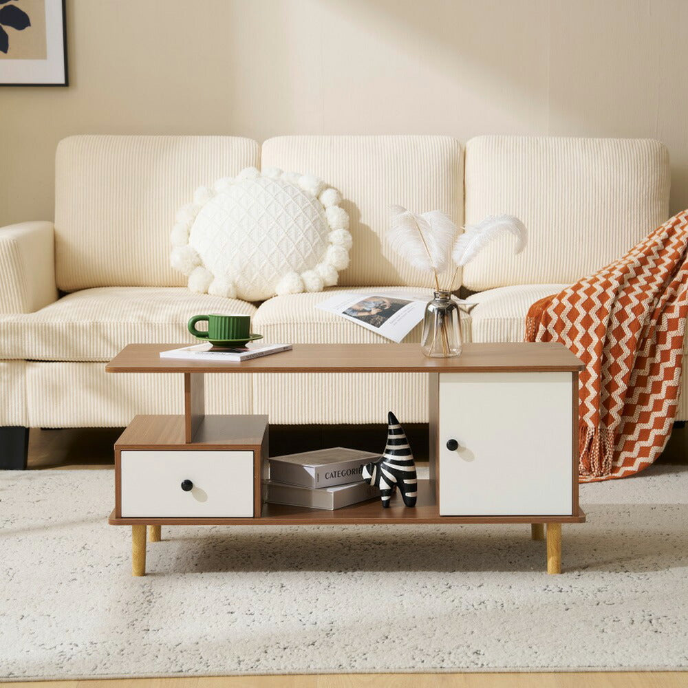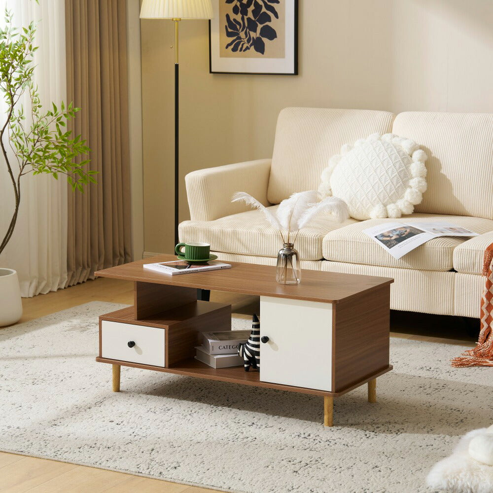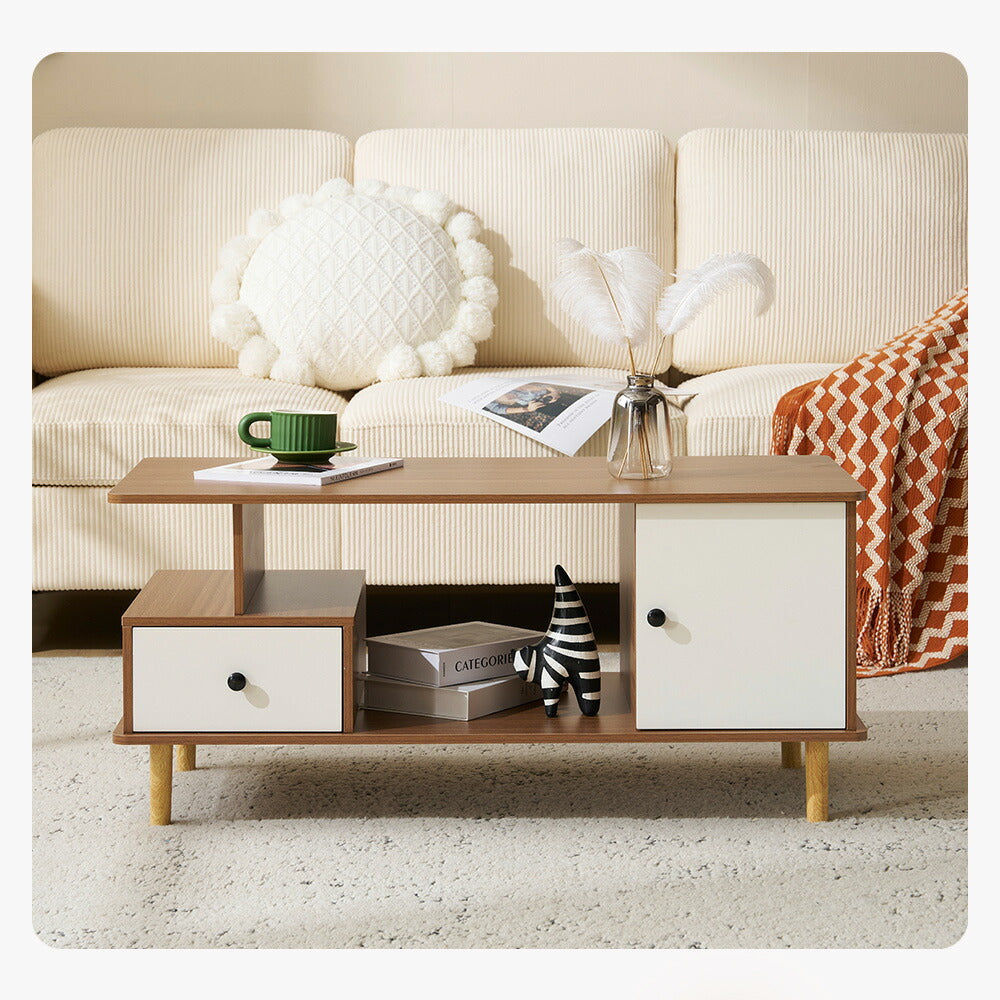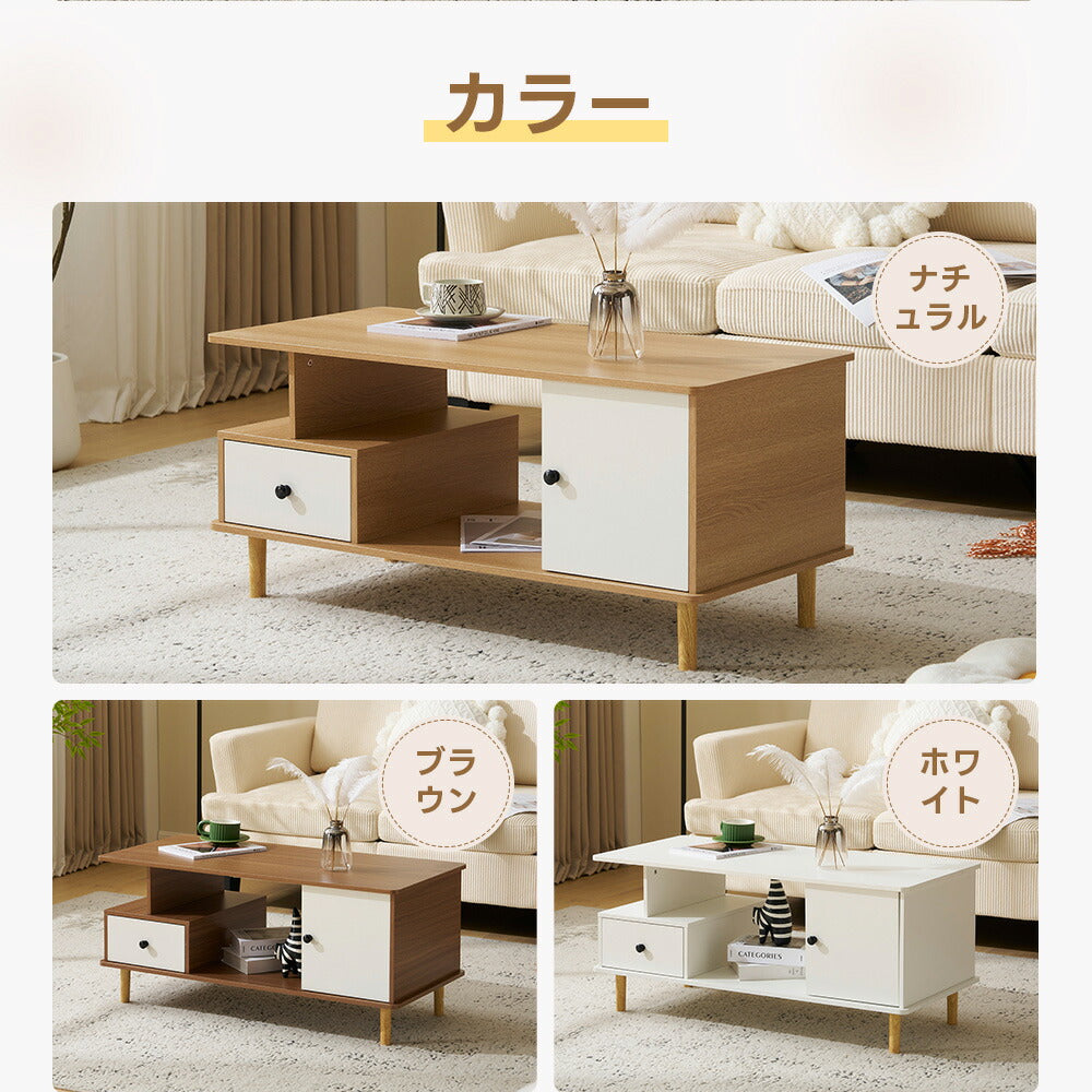 【ブラウン/ホワイト/ナチュラル】テーブル ローテーブル 収納テーブル 幅98 北欧 センターテーブル 引き出し付き 3色展開 リビングテーブル 木製 モダン おしゃれ かわいい シンプル カフェ風 ラック 座卓 テーブル 机 2人 在宅 作業 大きめ