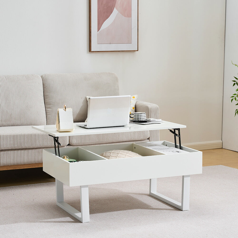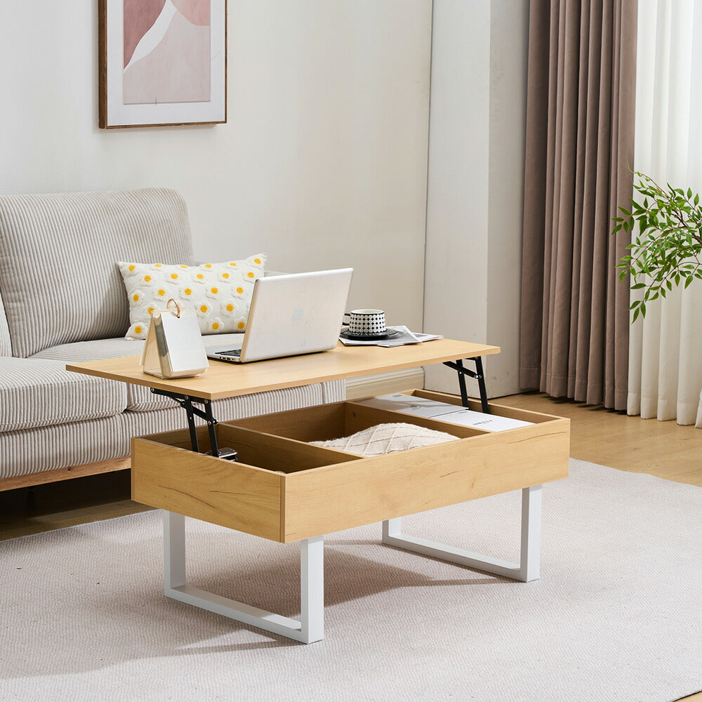 【ホワイト/ナチュラル】センターテーブル ローテーブル 折り畳み式天板 昇降式 高さ調節 昇降式テーブル おしゃれ 折りたたみ ローテーブル 一人暮らし 収納 大容量 木製 昇降 リビング リフトテーブル 幅100cm 天然木 スチール脚 リフティング 大きい 大きめ