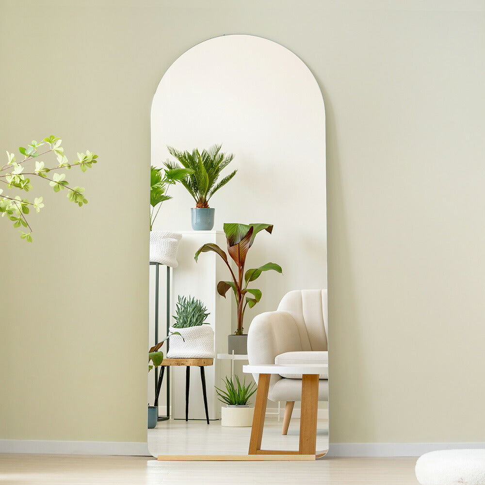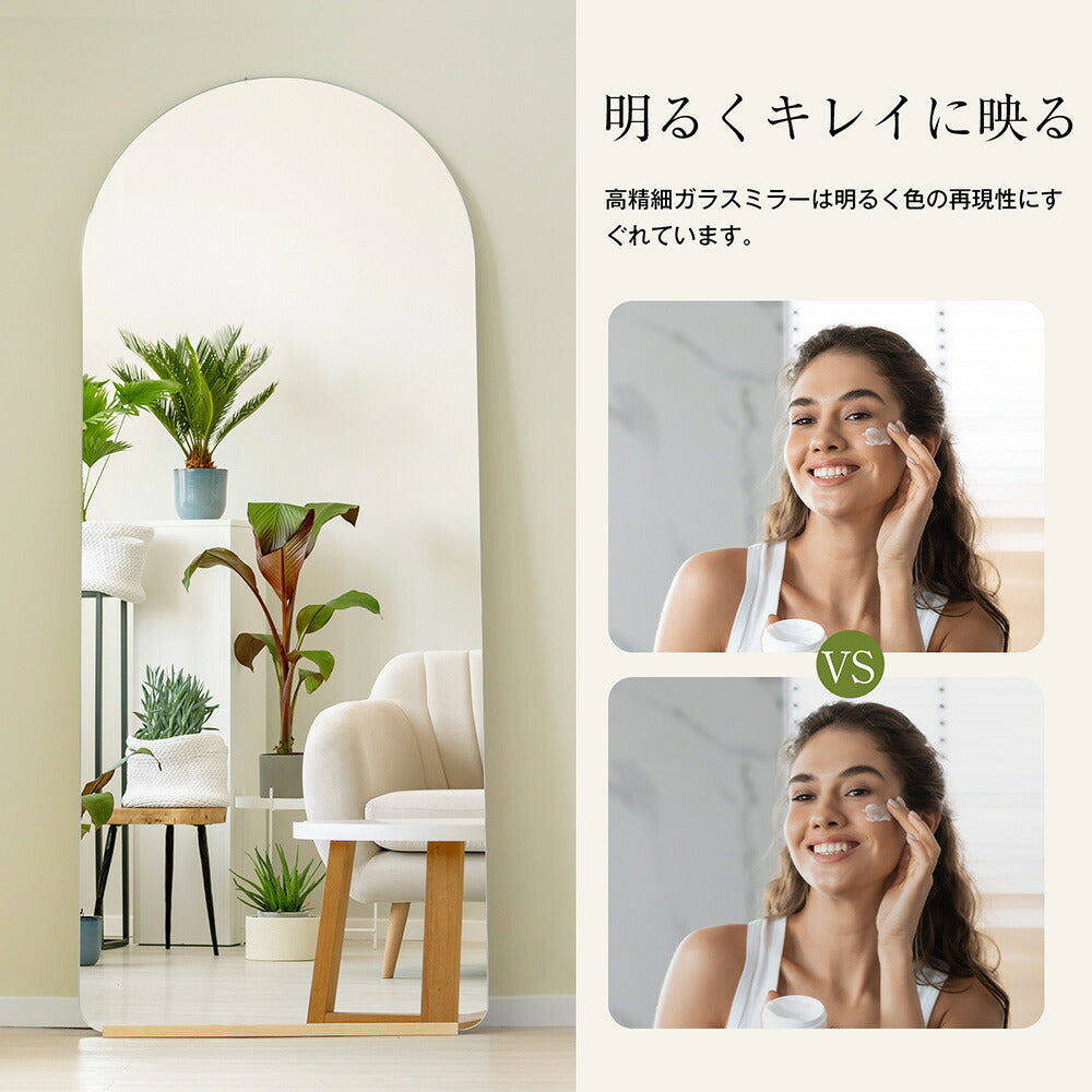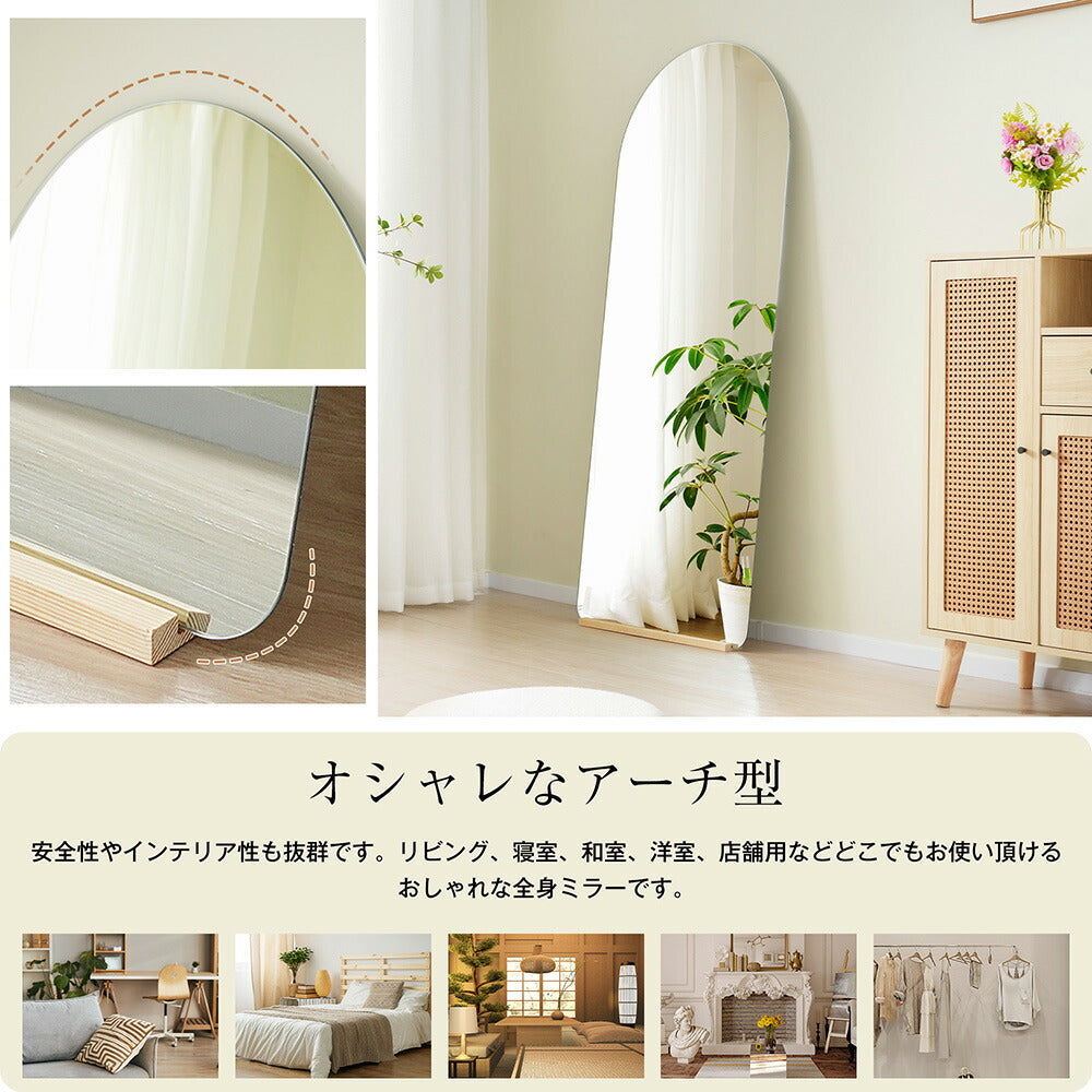 全身鏡 姿見鏡 スタンドミラー ノンフレーム アーチタイプ 立てかけ 姿見 鏡 ミラー おしゃれ 大型 飛散防止 木製台あり 160*50CM おしゃれ 大型 鏡 大きい スタンド 玄関 リビング 薄型 省スペース 賃貸 一人暮らし 新生活 韓国 北欧 シンプル