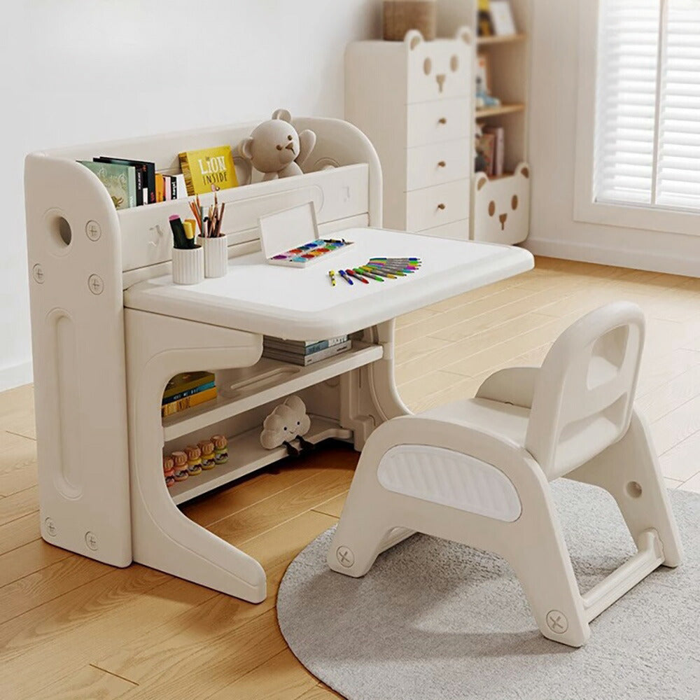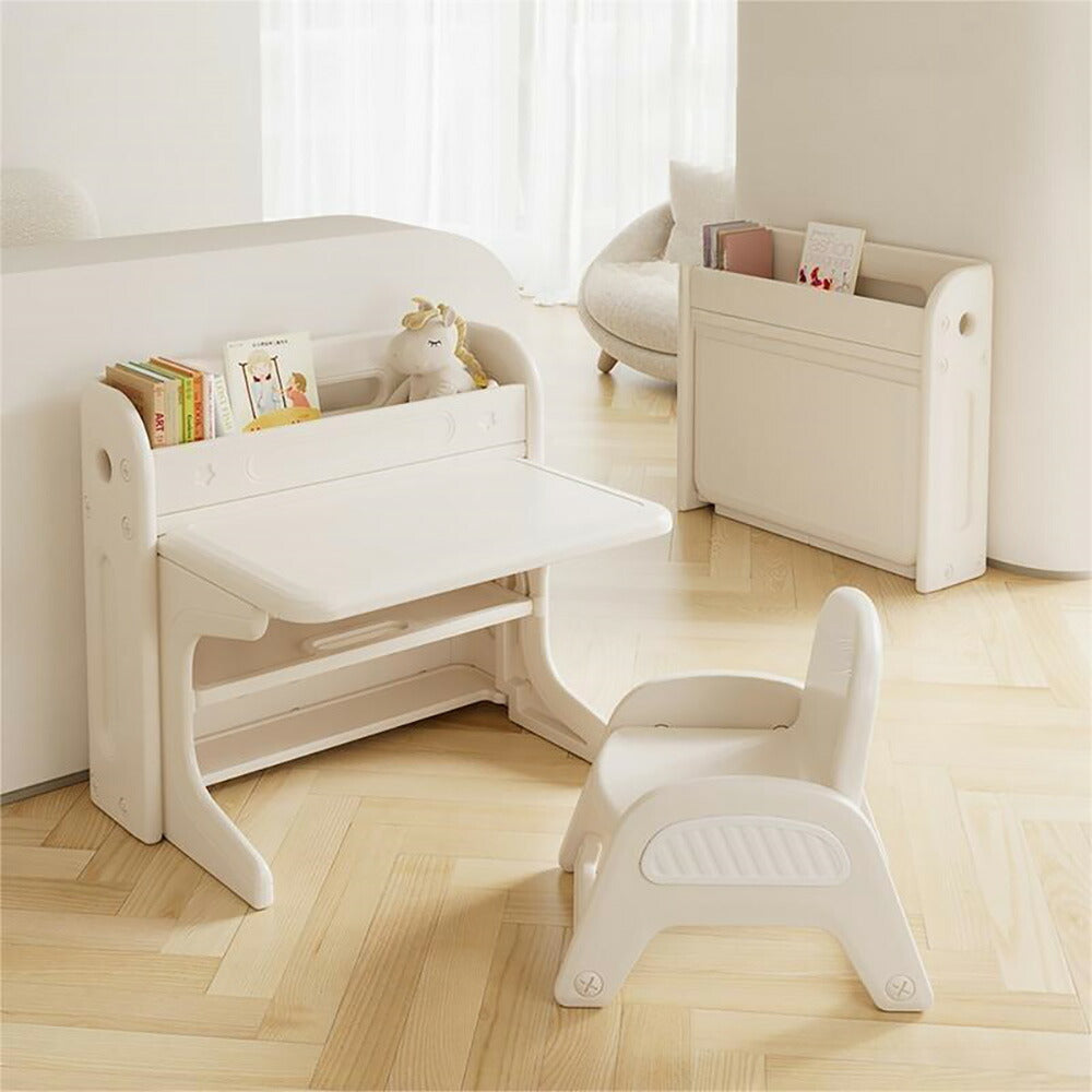 折りたたみキッズデスク チェア セット キッズテーブル ミニテーブル 子供用 勉強机 学習デスク テーブル 子供用テーブル 子供机 学習デスク 机 幼児机 お絵描きデスク 棚付き ホワイト 白 70cm こども 組み立て簡単 多機能 省スペース プレゼント