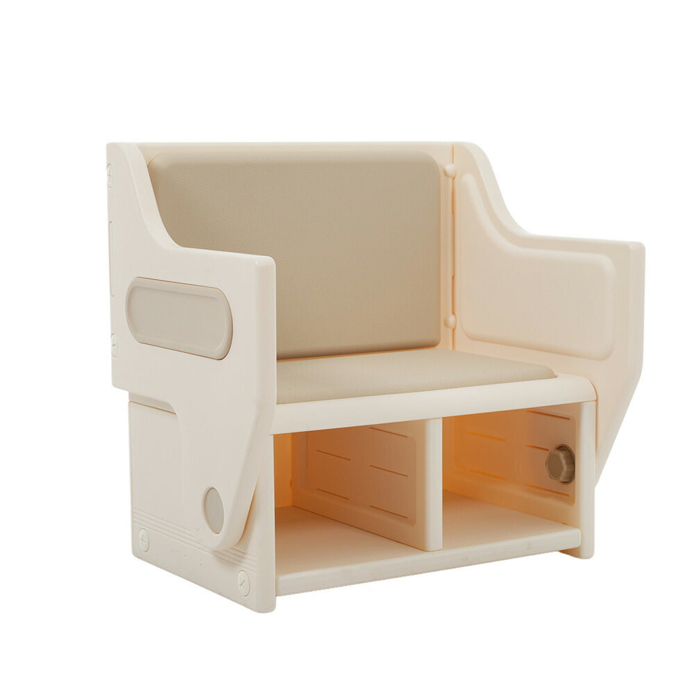 一体式デスク&チェア キッズテーブル ミニテーブル 子供用 勉強机 学習デスク テーブル 子供用テーブル 子供机 学習デスク 机 幼児机 お絵描きデスク 棚付き ホワイト 白 こども 組み立て簡単 多機能 省スペース プレゼント