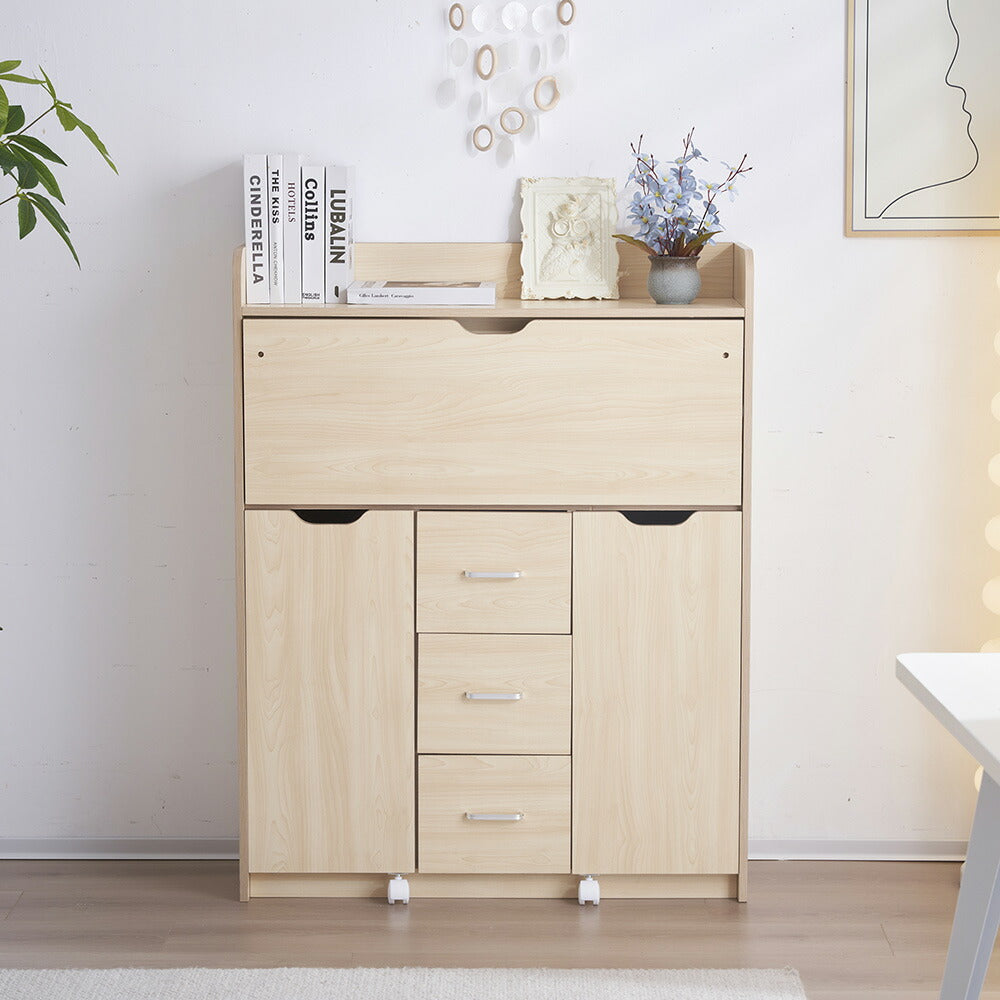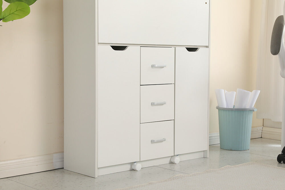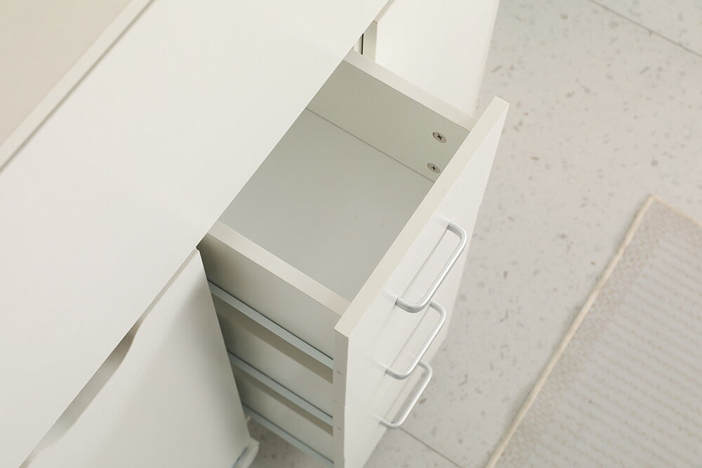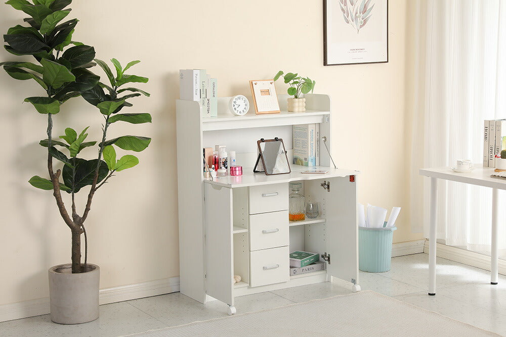 ◆商品説明 ■POINT1 美しい木目調天板 立体感のある木目調デザインで、空間になじむ上品な印象に。水や汚れに強く、日常のお手入れも簡単に行えます。 ■POINT2 折りたたみ式の省スペース設計 使用しないときはコンパクトに折りたたんで収納可能。幅約30cmのスリム設計で、お部屋の隅にもすっきり収まります。 ■POINT3 幅広く使える多用途デスク 展開時は約86.5cmの作業スペースを確保。仕事や勉強、メイクなど、さまざまなシーンで活躍します。 ■POINT4 充実の収納スペース 多段ラックや引き出し、可動棚を備え、小物から書類まで整理整頓が可能。作業スペースをすっきり保てます。 ■POINT5 移動しやすいキャスター付き キャスター付きで移動もスムーズ。レイアウト変更や掃除の際にも手軽に動かせます。 ■POINT6 高さ調整できる可動棚 収納物に合わせて棚の高さを調整可能。スペースを無駄なく活用できます。 ■POINT7 使いやすい取っ手付き引き出し 取っ手付きで開閉がしやすく、必要なものをスムーズに取り出せます。 ■POINT8 丸みのある安全設計 角を丸く仕上げたデザインで、見た目のやさしさと安全性を両立しています。 |