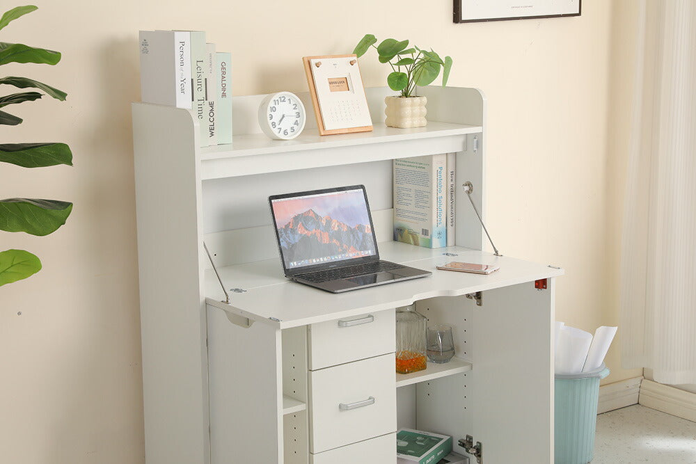 【ホワイト/ナチュラル】学習机 デスク パソコンデスク 勉強机 折り畳み天板 変形家具 引き出し PCデスク 棚付き 収納 省スペース リビング ワークデスク 子供 大人 テレワーク 在宅ワーク 2色展開 リモートワーク 北欧