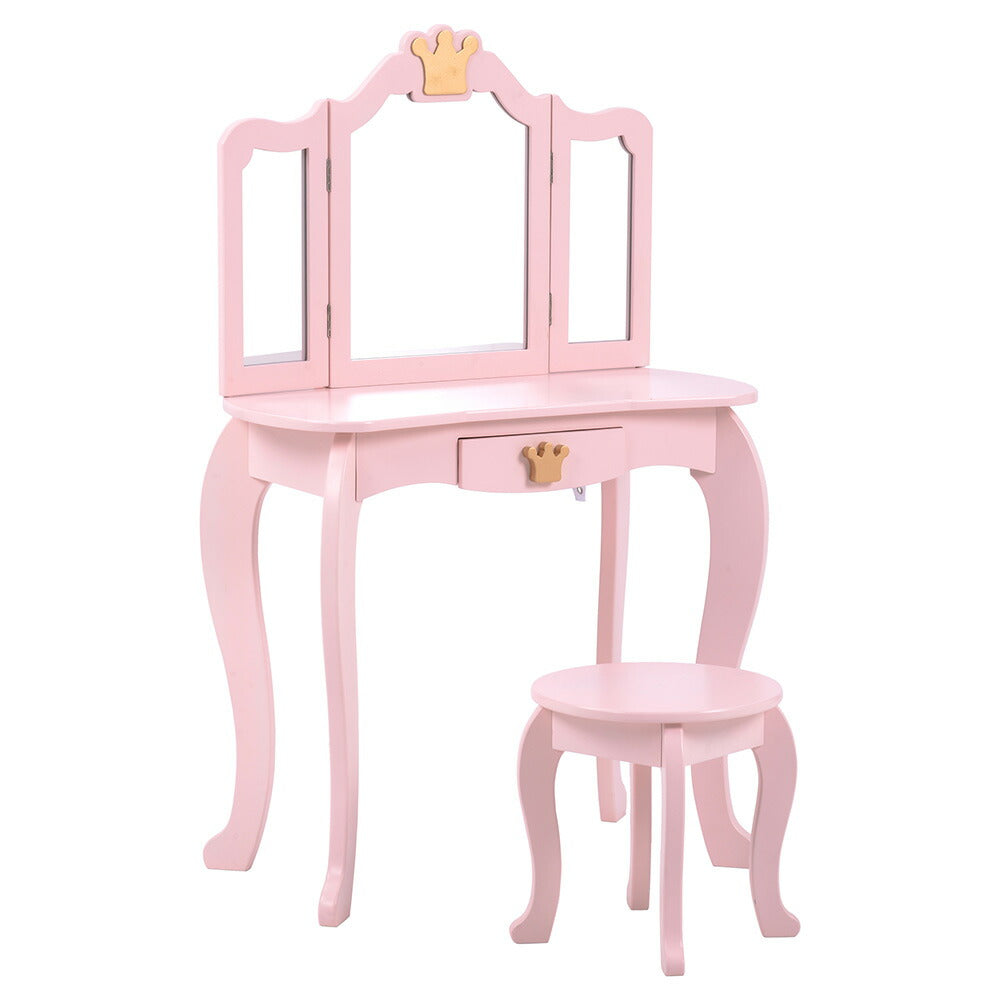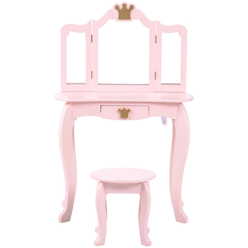 ドレッサー おままごと姫系 引き出し 木製 子供ドレッサー プレゼントおもちゃ お化粧 おめかし メイク台 ミラー 三面鏡 木製 お化粧 王冠 おうかん キッズ 女の子 プレゼント お姫様 女の子プレゼント 姪 おしゃれ かわいい
