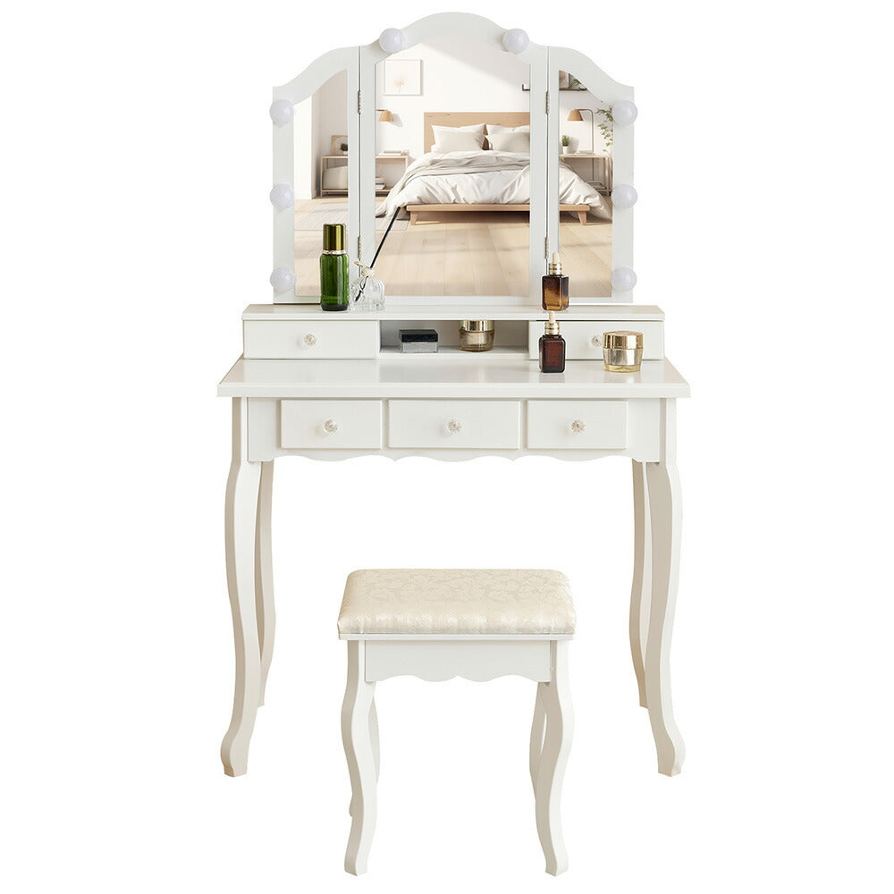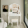 ドレッサー 化粧台 テーブル 鏡台 ライト付き 3色LED 女優ミラー 引き出し 収納 椅子 スツール付き セット サイド収納 メイク台 木製 ホワイト 白 幅80cm 80cm シンプル 大容量 可愛い 高級感 お姫 おしゃれ