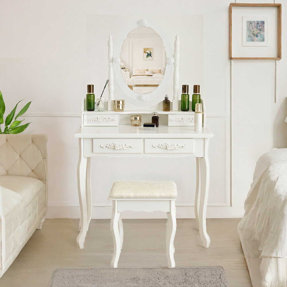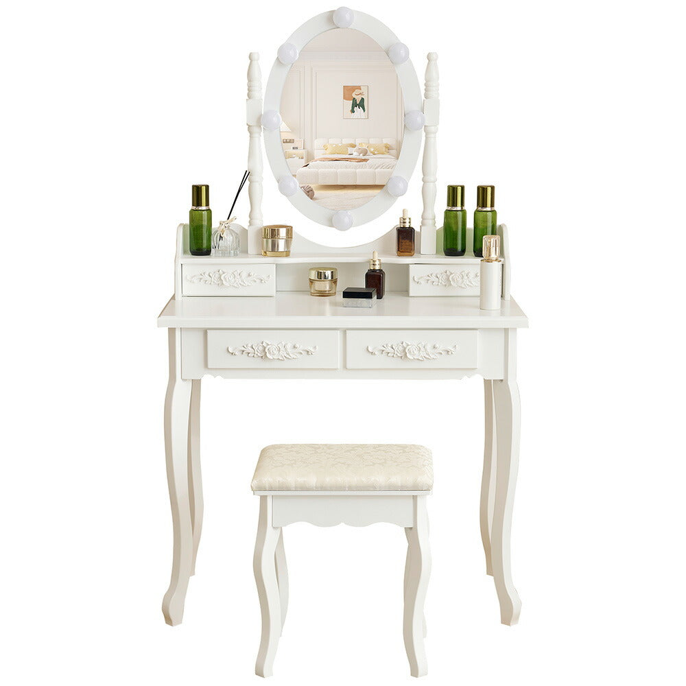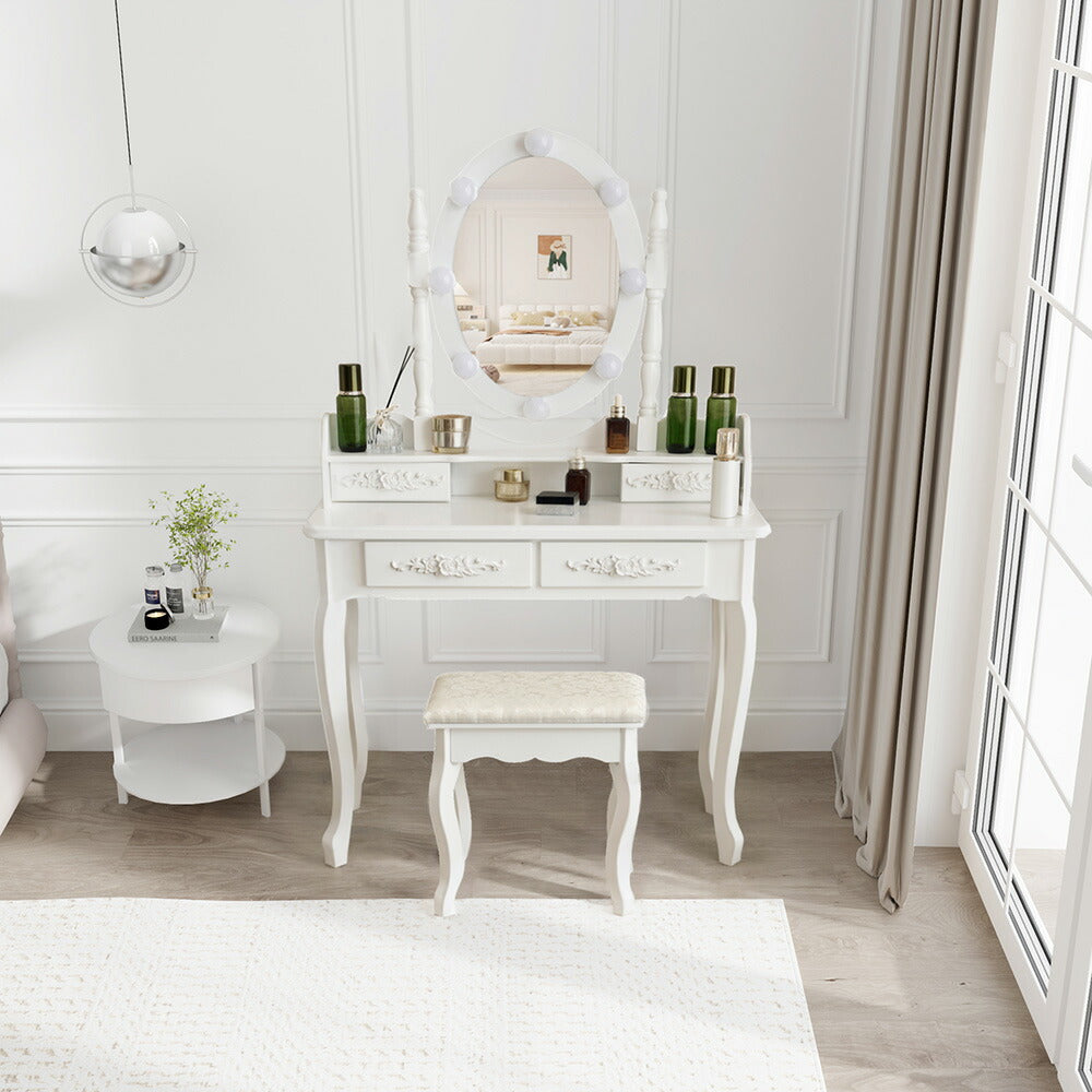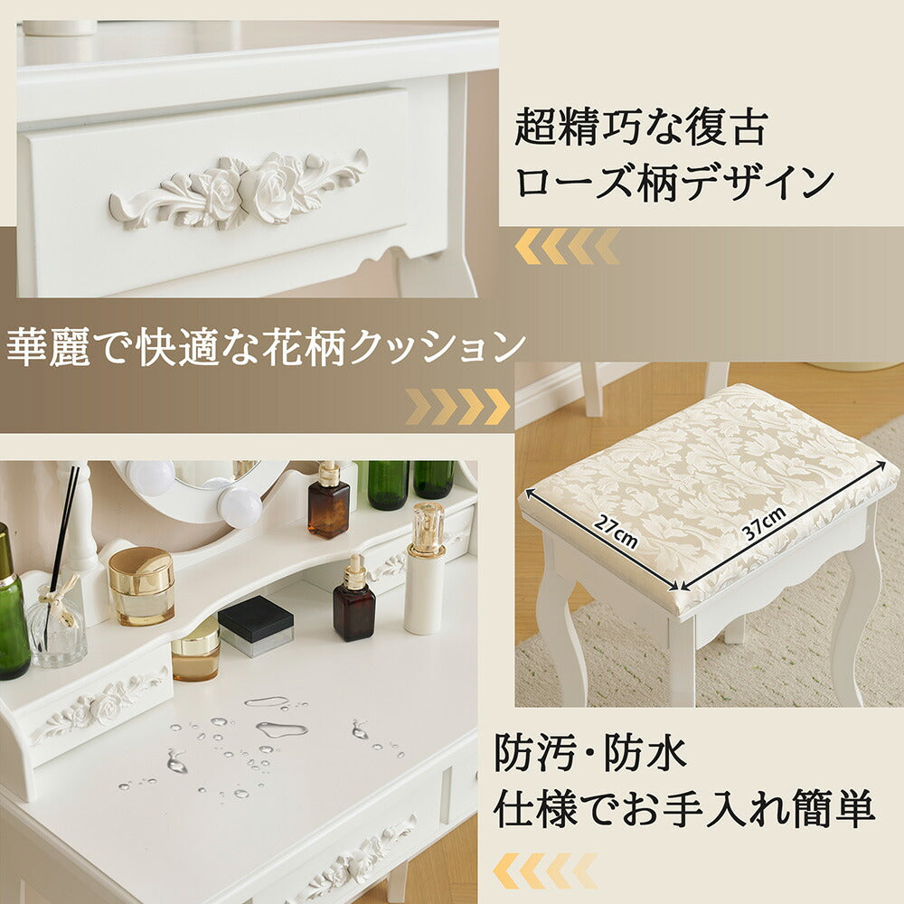 ドレッサー 化粧台 テーブル 鏡台 ライト付き 3色LED 女優ミラー 引き出し 収納 椅子 スツール付き セット サイド収納 メイク台 木製 ホワイト 白 幅80cm 80cm シンプル 大容量 可愛い 高級感 お姫 おしゃれ