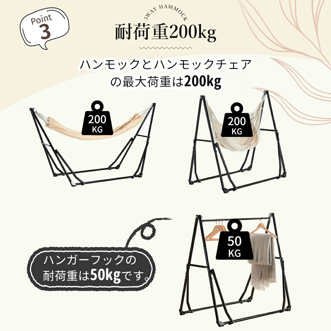 ハンモック&ハンモックチェア 2点セット 自立式 3WAY スタンド付き 折りたたみ ポータブルハンモック 室内 屋外 アウトドア チェア ハンガーラック 耐荷重200kg 収納バッグ付き 7日内出荷