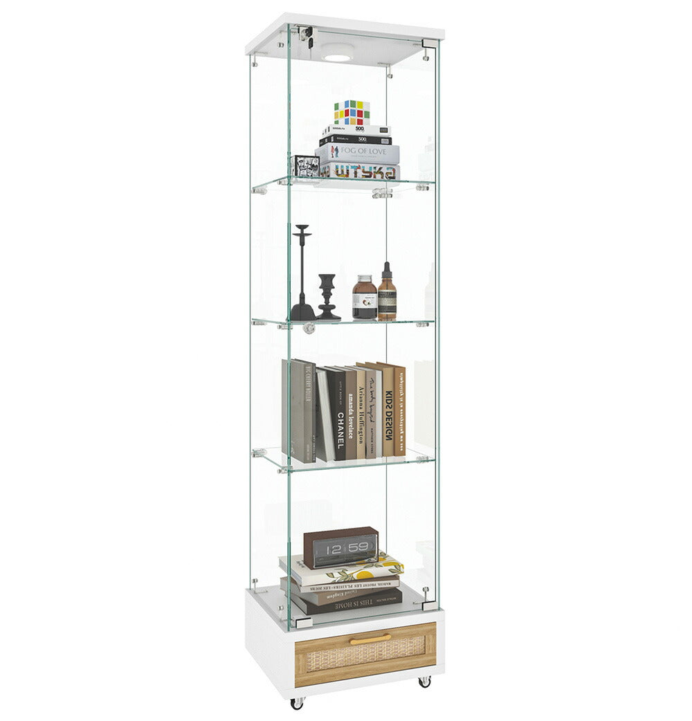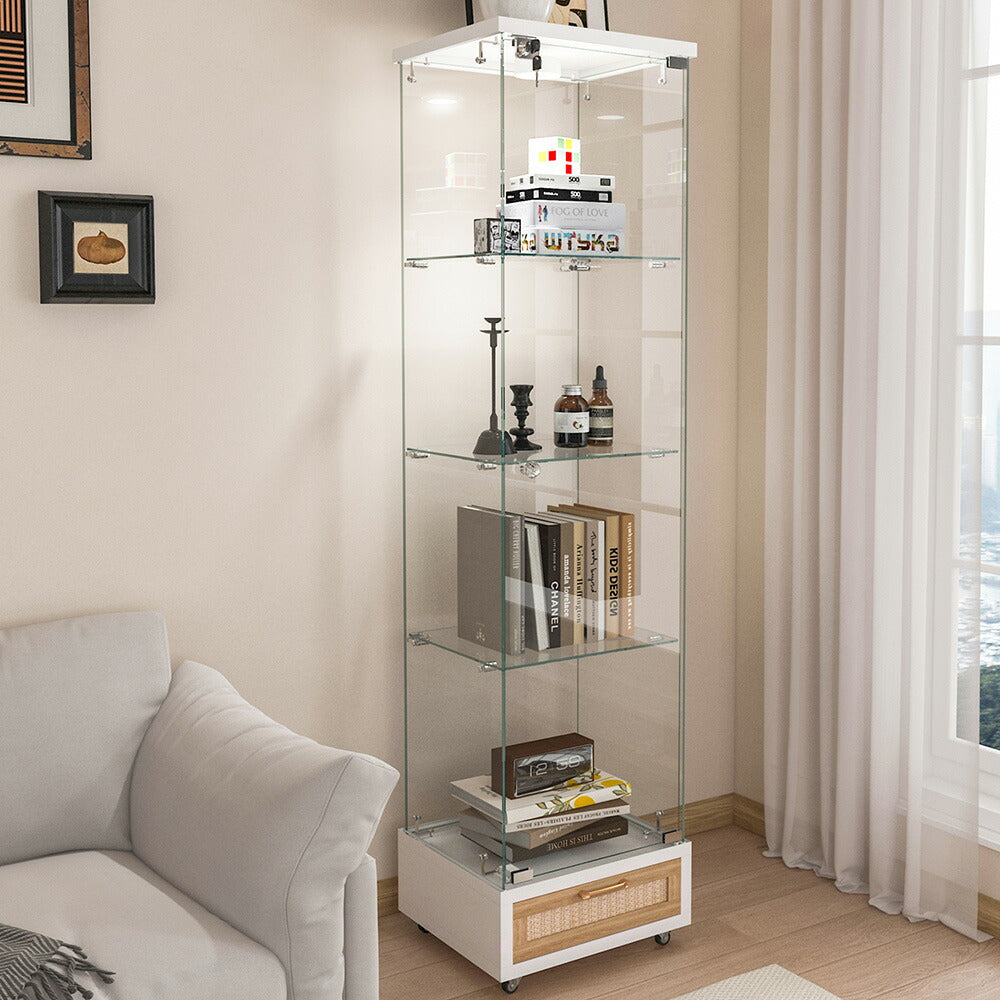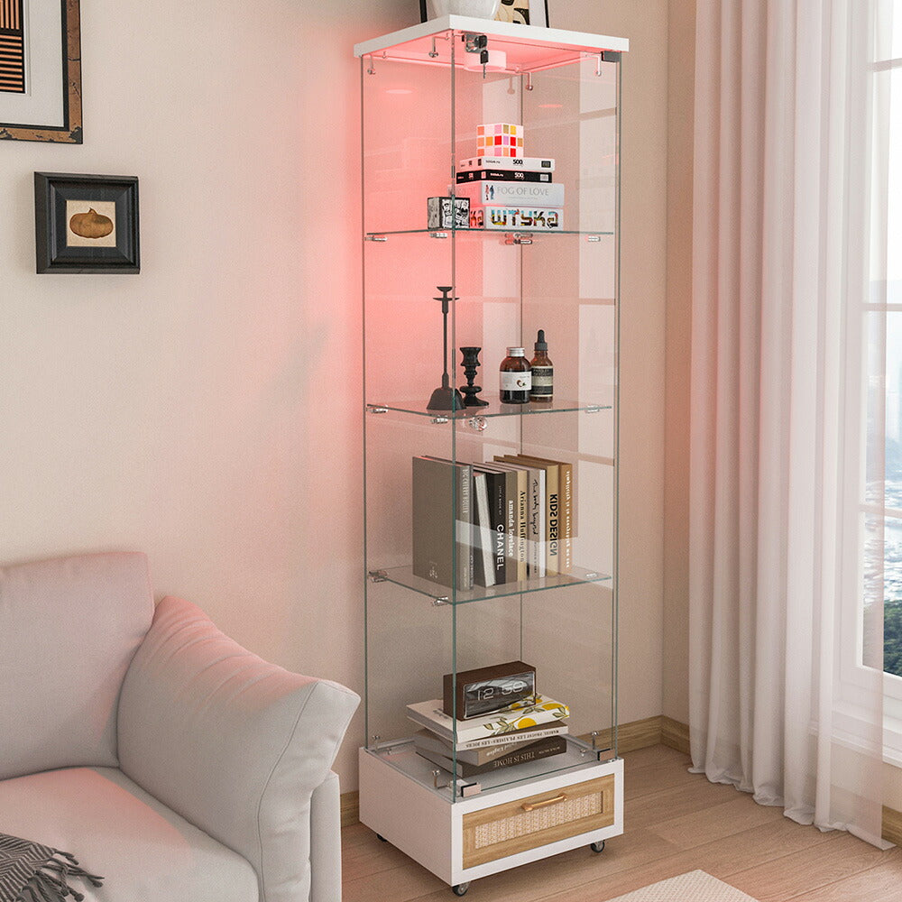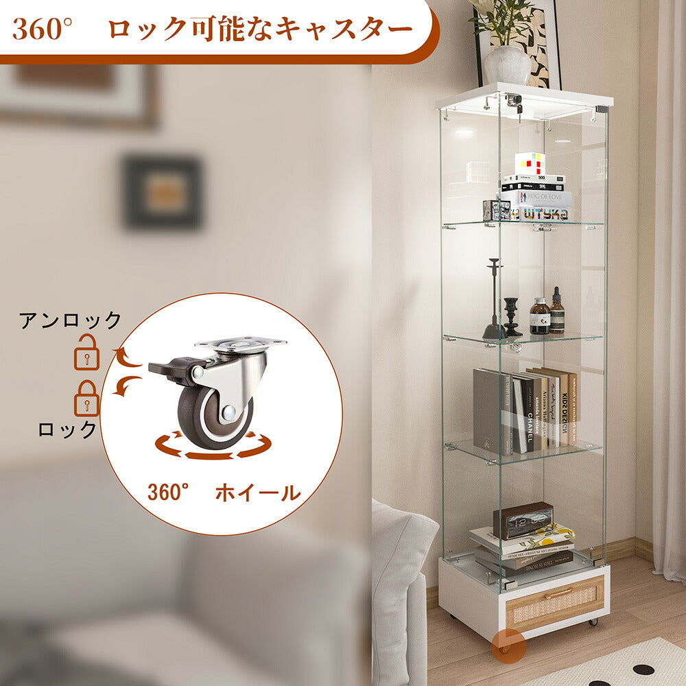 コレクションケース コレクションシェルフ コレクションケース キャビネット 鍵付き フィギュアケース 強化ガラス扉付き LED照明&引き出し付き 4段 スリム 収納棚 全面ガラス ディスプレイ 7日内出荷