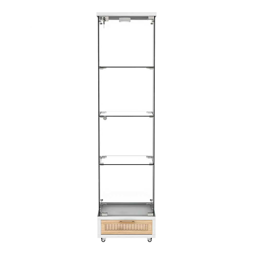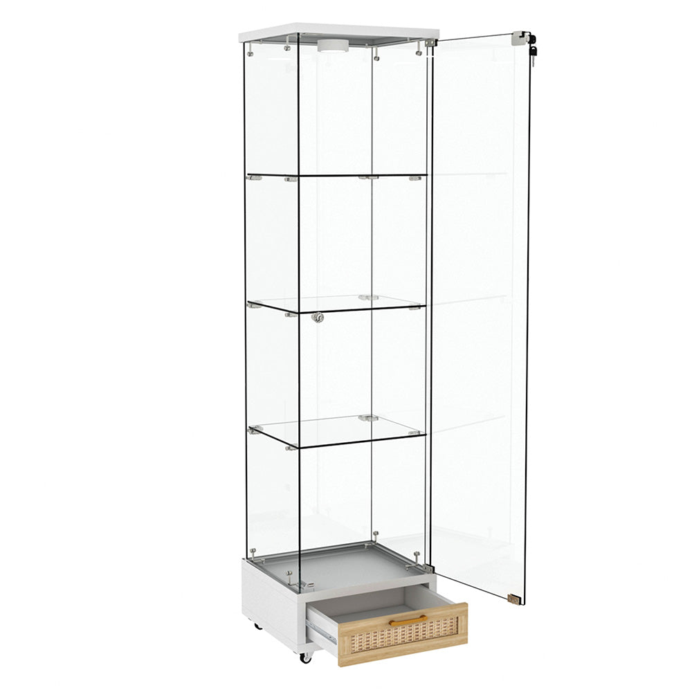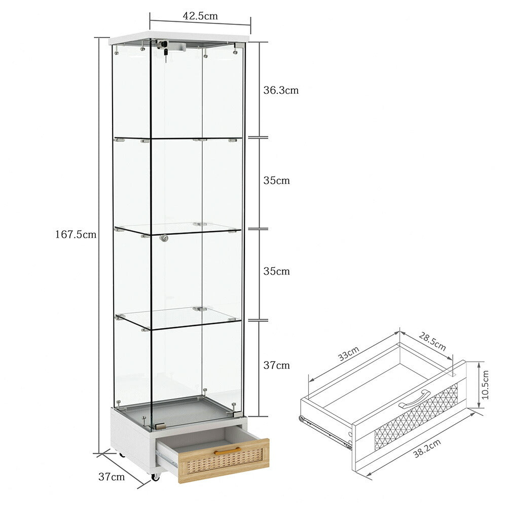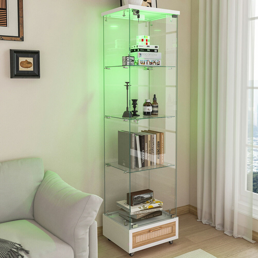 コレクションケース コレクションシェルフ コレクションケース キャビネット 鍵付き フィギュアケース 強化ガラス扉付き LED照明&引き出し付き 4段 スリム 収納棚 全面ガラス ディスプレイ 7日内出荷
