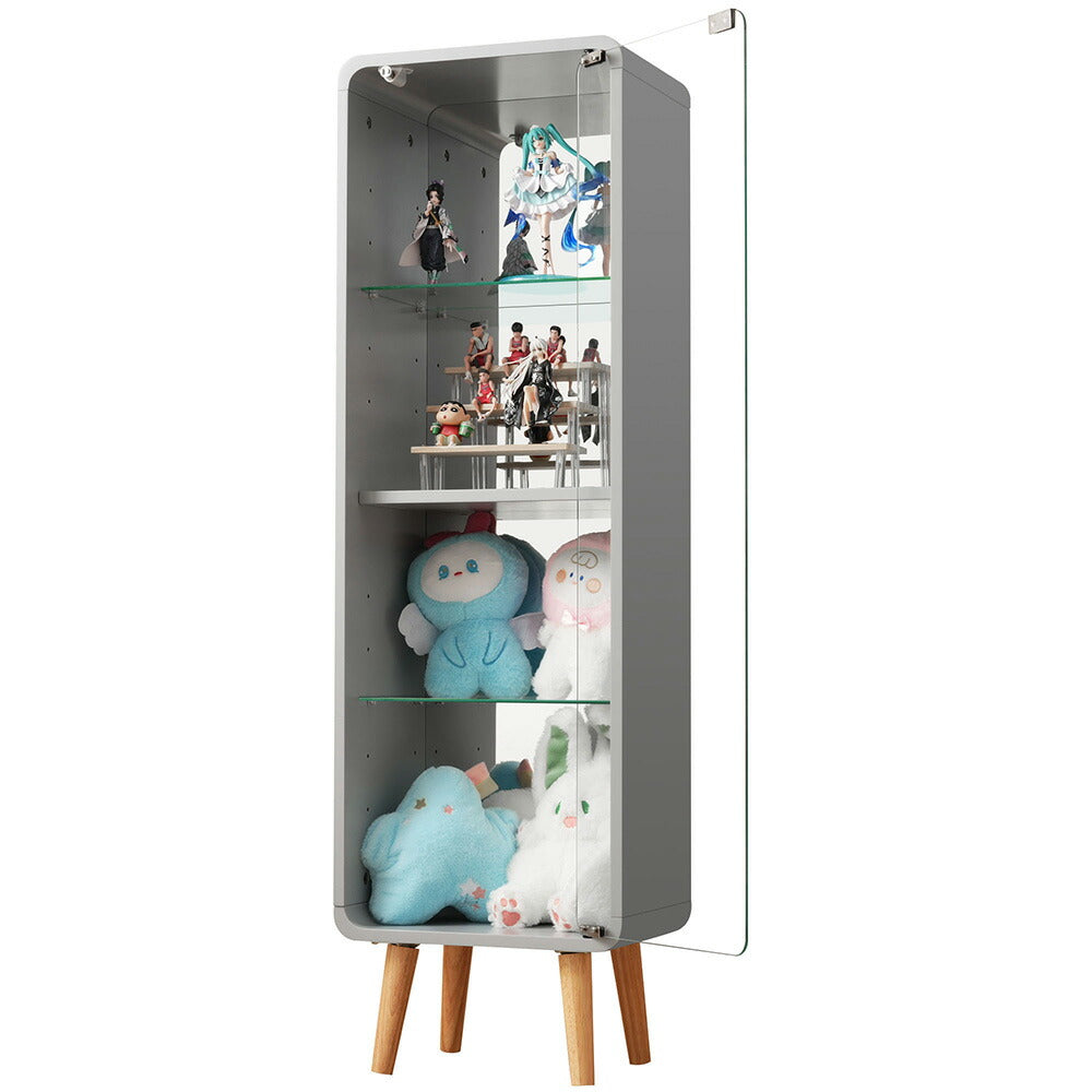 コレクションケース コレクションシェルフ コレクションケース キャビネット フィギュアケース 強化ガラス扉付き 4段 高さ調節可能 可動棚 スリム 収納 背面ミラー 棚 グレー 7日内出荷