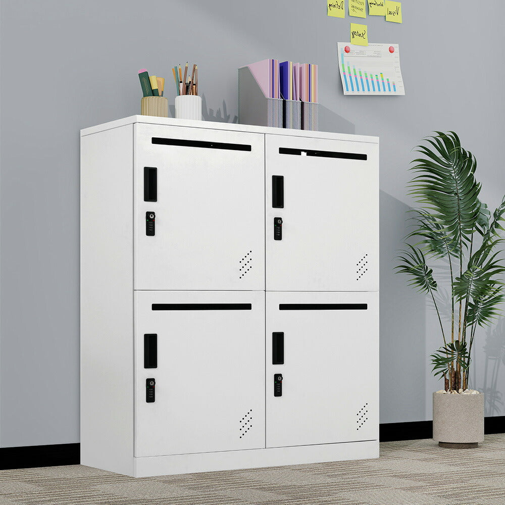 【完成品】貴重品ロッカー 4人用 鍵付き収納 小型 貴重品 金庫 セキュリティキャビネット ホワイト 白 2段 ダイヤル錠 小物収納 管理キー付き 防犯 貴重品入れ オフィス 事務所 更衣室 学校 業務用 おしゃれ キャビネット スチール