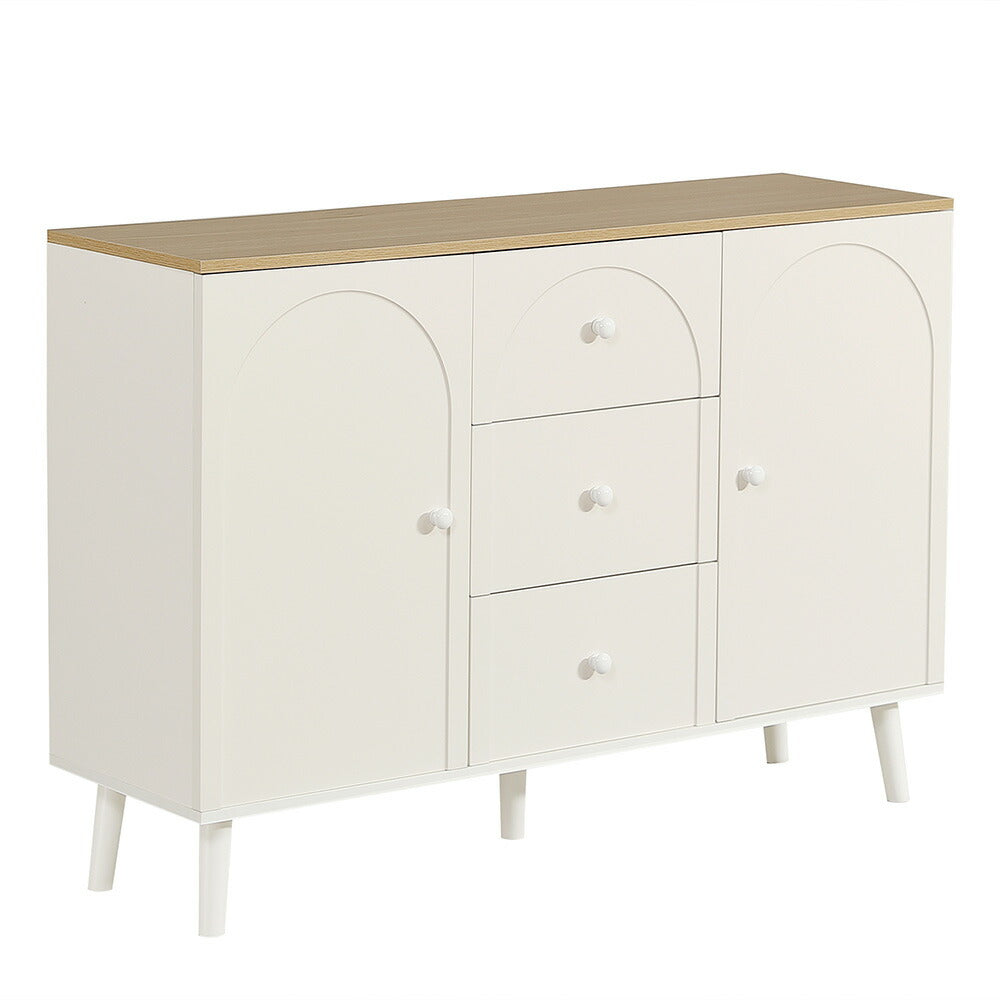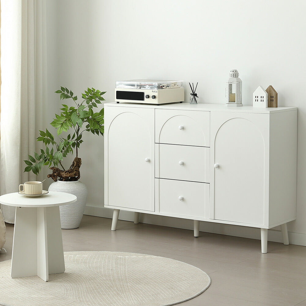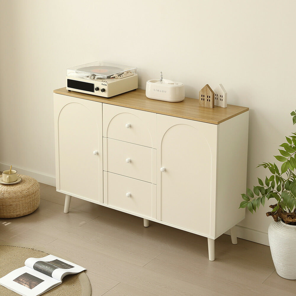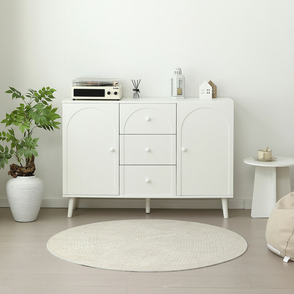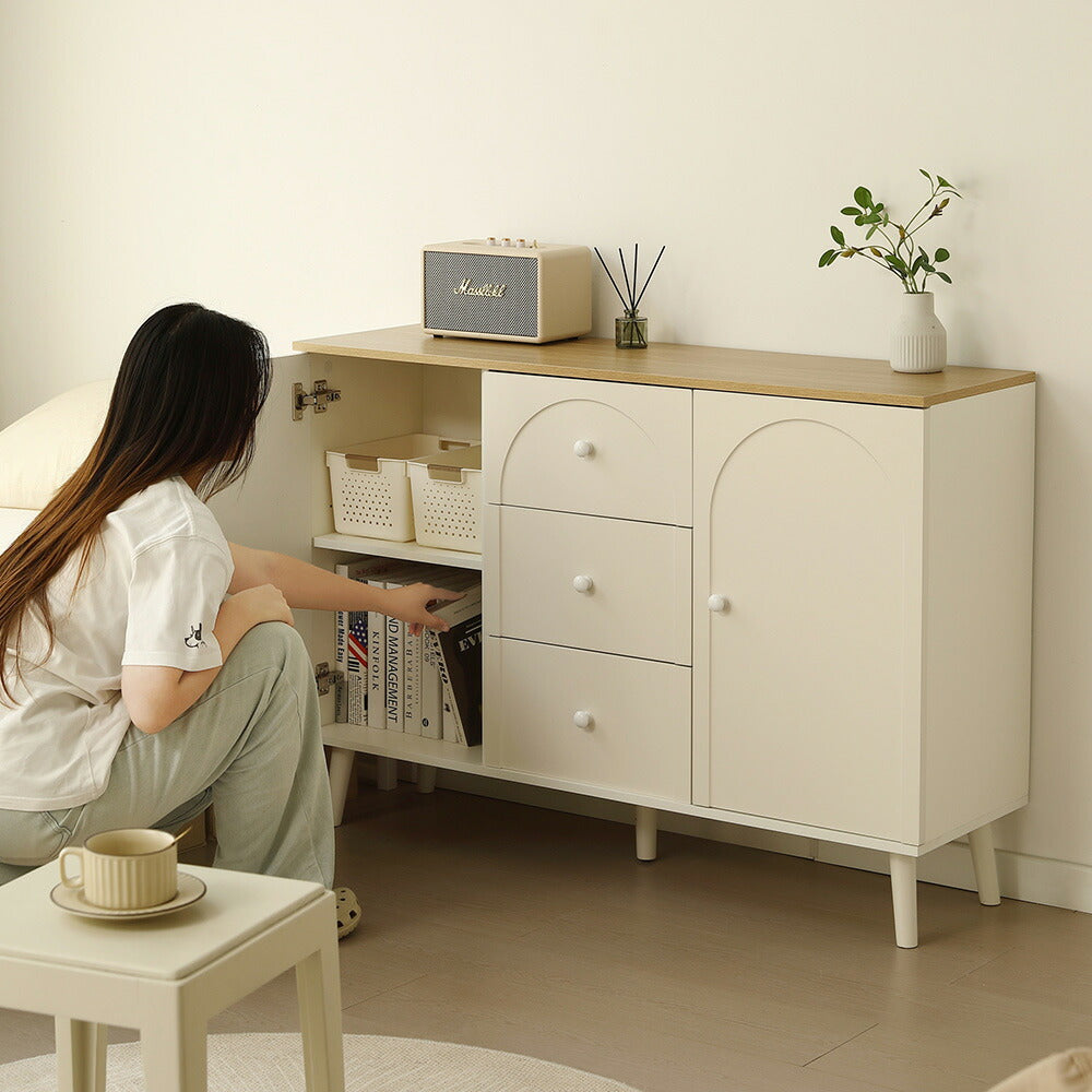 キャビネット サイドボード チェスト 引き出し付き ホワイト アイボリー 白 大容量 収納棚 リビング 収納 モダン 扉付き リビングボード おしゃれ 整理タンス 北欧 韓国風 おしゃれ 寝室 子供部屋 幅118cm 奥行35cm 高さ82cm 2Way仕様天板 可愛い