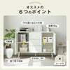 ◆商品説明 ■POINT1 収納とディスプレイを両立するサイドボード 扉収納で生活感のある物をすっきり隠し、オープンスペースにはお気に入りの雑貨やよく使う物を置けます。コンパクトながら収納力があり、空間を有効活用できます。 ■POINT2 キッチン収納にも最適な奥行35cm設計 電子レンジやコーヒー器具などの家電やキッチン用品をまとめて収納可能。本や雑誌なども取り出しやすく、収納とインテリア性を両立します。 ■POINT3 スムーズに使える引き出し収納 衣類や小物など用途に合わせて整理できる便利な引き出し付き。金属レールを採用し、開閉がスムーズで、落下を防ぐ安心設計です。 ■POINT4 メラミン加工で水・キズに強い 表面にはメラミン加工を施し、傷や汚れに強い仕様。耐熱性・耐光性にも優れ、日常のお手入れも簡単で、美しい状態を長く保てます。 ■POINT5 高さ調整できる可動棚 棚板は三段階で高さ調整が可能。収納する物のサイズに合わせて無駄なくスペースを使えます。 ■POINT6 天然木脚付きでお掃除ラクラク 床との間にスペースを確保した脚付き設計。掃除機やモップが入りやすく、清潔な空間を保てます。 ■POINT7 使いやすさに配慮した細部設計 上品なアーチデザインが空間のアクセントに。横揺れ防止金具付きで安定感があり、コード穴付きで配線もすっきり整理できます。 |