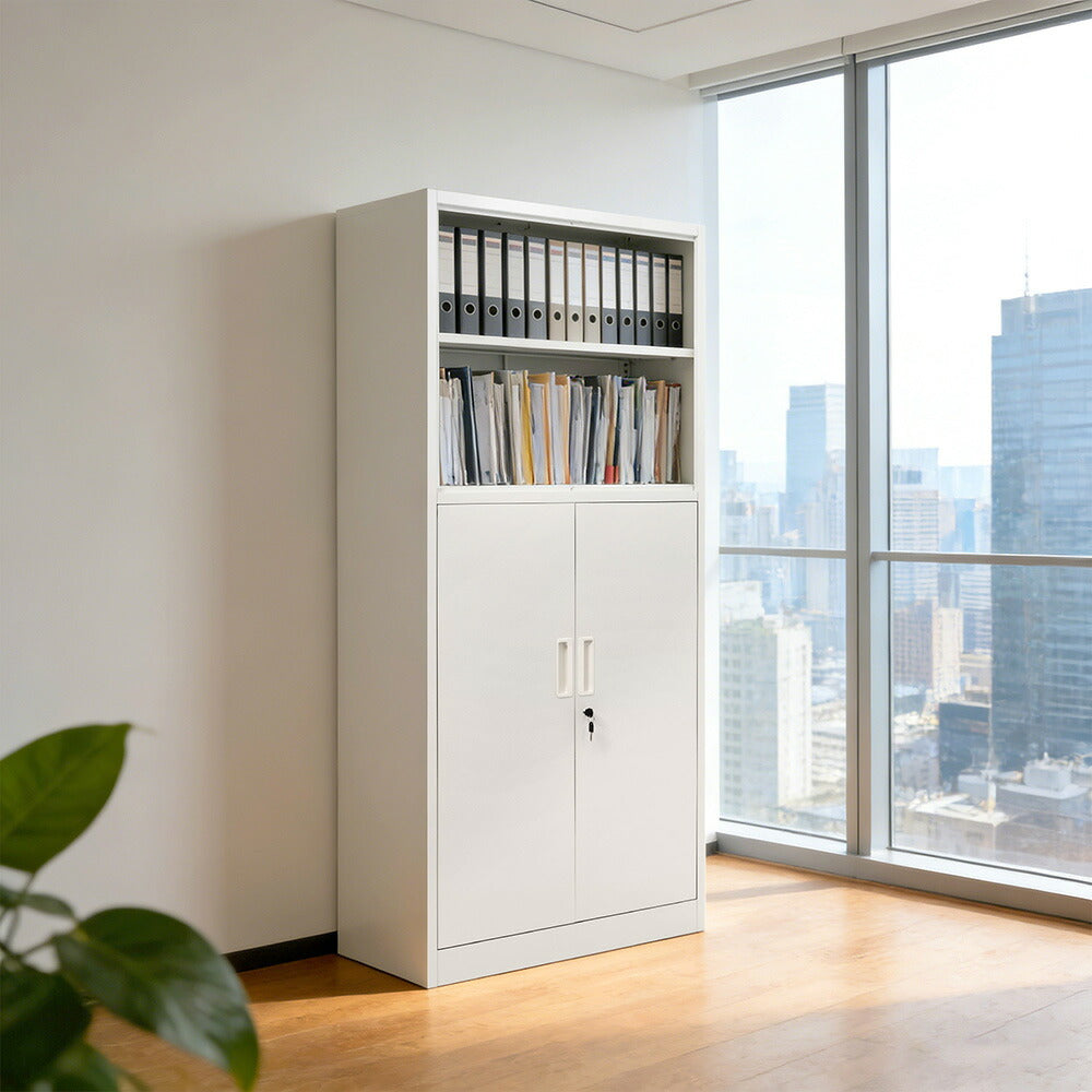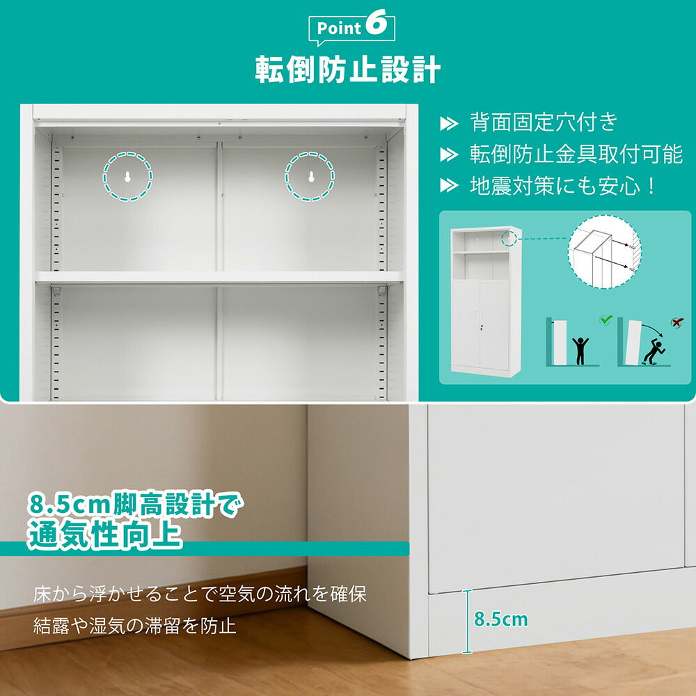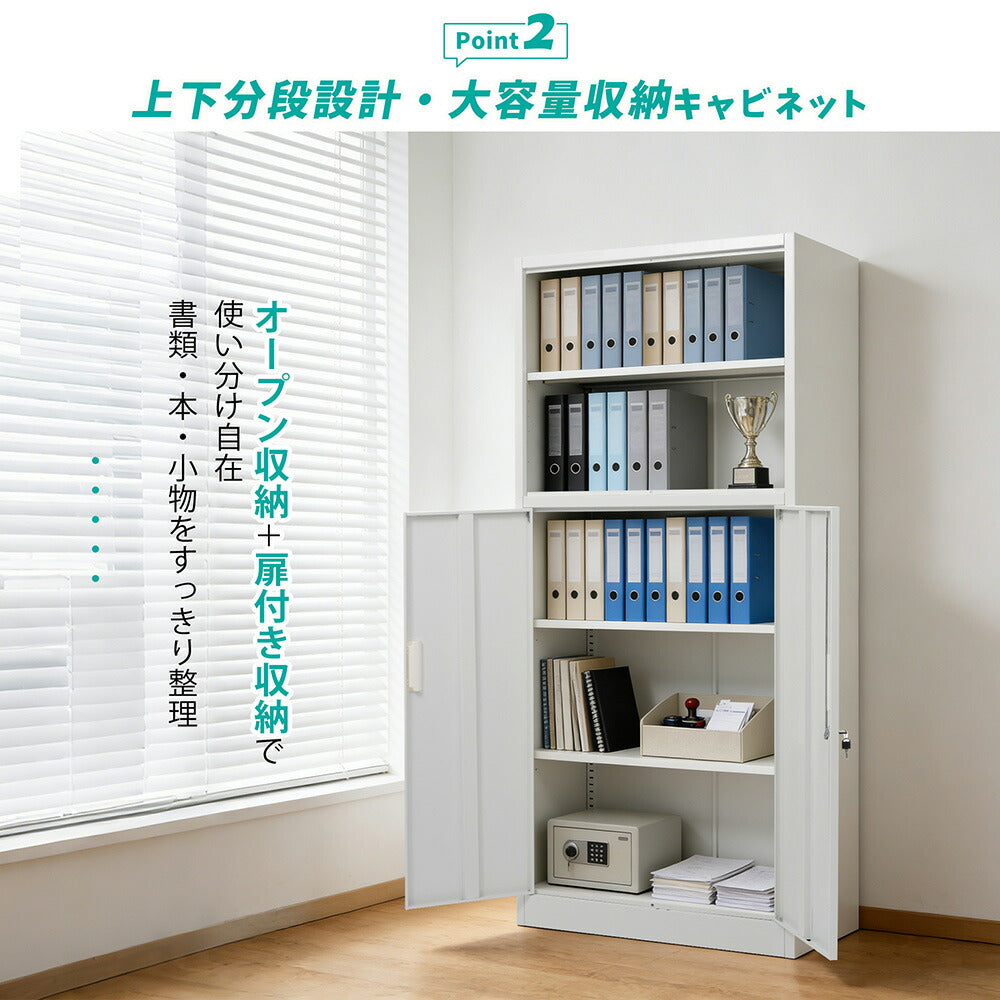 ◆商品説明 ■POINT1 上下分段設計で用途別に収納しやすい構造 上部はオープン収納、下部は扉付き収納として使い分けが可能。書類や備品の整理整頓を効率よく行え、オフィス環境をすっきり保てます。 ■POINT2 オープン棚で取り出しやすい実用性 使用頻度の高いファイルや資料をすぐに手に取れるオープンタイプ。作業効率向上にも役立つ設計です。 ■POINT3 鍵付き両開き扉で重要書類の管理も安心 下段収納部には施錠機能付き扉を採用し、重要書類や備品の保管に対応。共有スペースでも安心して使用できます。 ■POINT4 転倒防止設計で安定した設置が可能 安定感に配慮した構造により、設置時の安全性を向上。業務用環境でも安心して長期間使用できます。 ■POINT5 5年保証付きで安心の品質 長期使用にも耐える高品質な製品で、5年間の保証が付いており、安心してお使いいただけます。 |