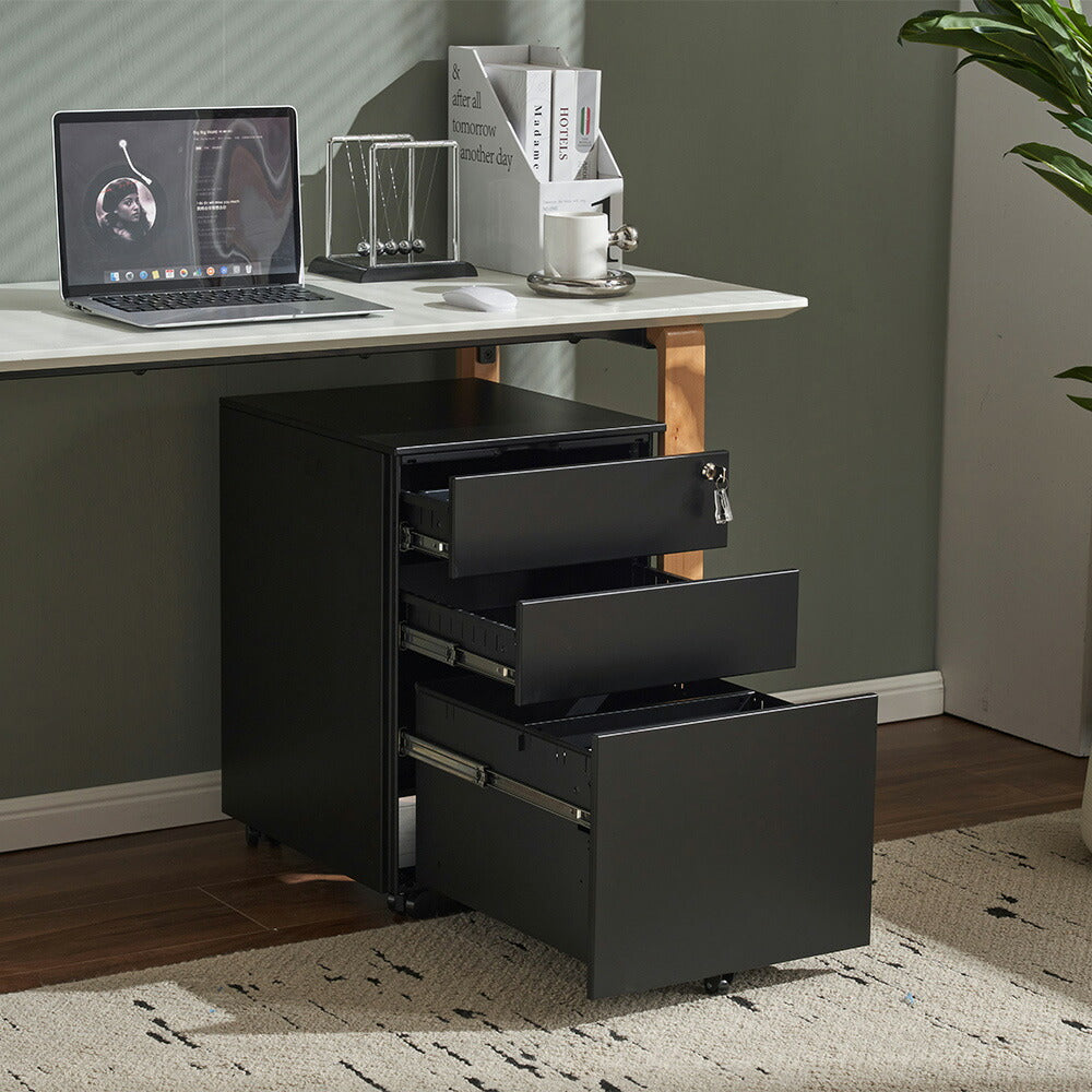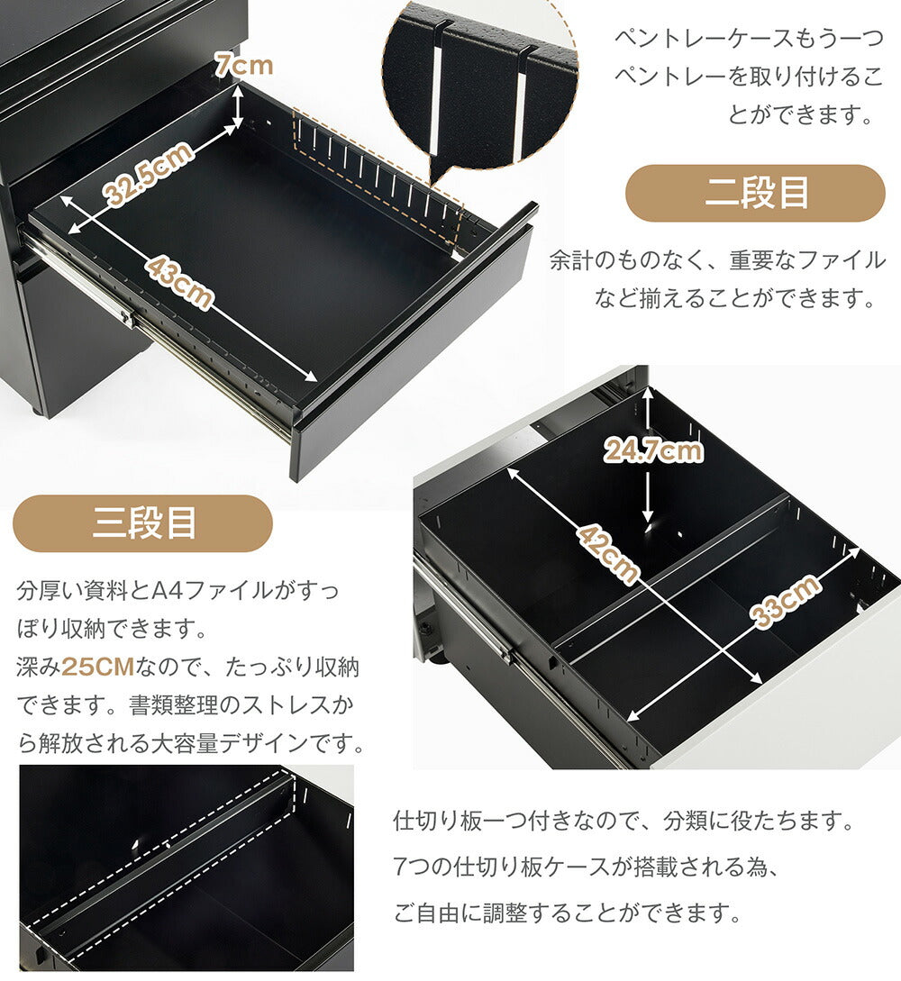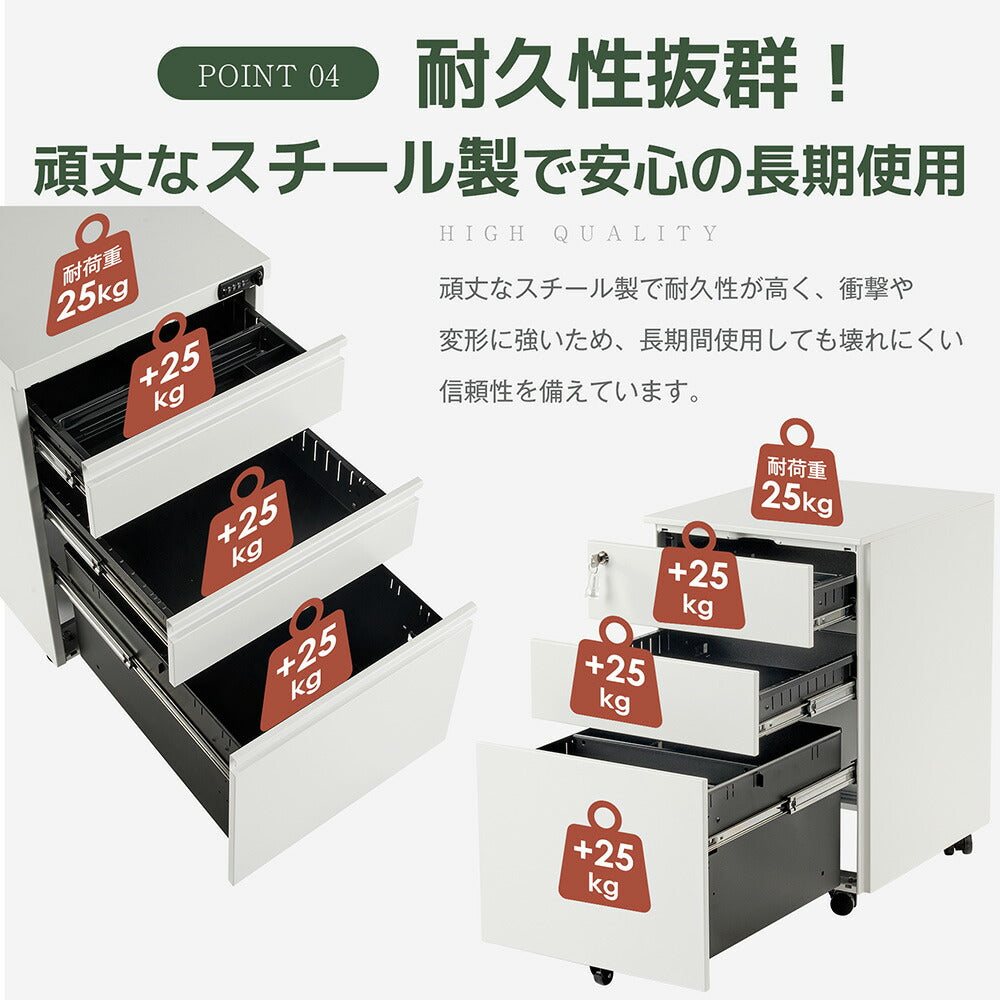 ◆商品説明 ■POINT1 3段大容量収納で書類や小物をすっきり整理 用途に応じて収納できる3段引き出し構造。文具・書類・ファイルなどを分けて収納でき、作業スペースを快適に保てます。 ■POINT2 鍵付き仕様で重要書類や私物の管理も安心 施錠できる設計により、個人情報や貴重品の保管にも対応。共有オフィスや店舗環境でも安心して使用できます。 ■POINT3 キャスター付きでデスク下移動もスムーズ 必要な場所へ簡単に移動できるため、レイアウト変更や清掃時にも便利。デスク周りの使い勝手が向上します。 ■POINT4 スチール製ボディで安定感のある使用感 しっかりとした構造で日常的な使用にも対応。業務用としても使いやすい耐久性の高い設計です。 ■POINT5 5年保証付きで安心の品質 長期使用にも耐える高品質な製品で、5年間の保証が付いており、安心してお使いいただけます。 |