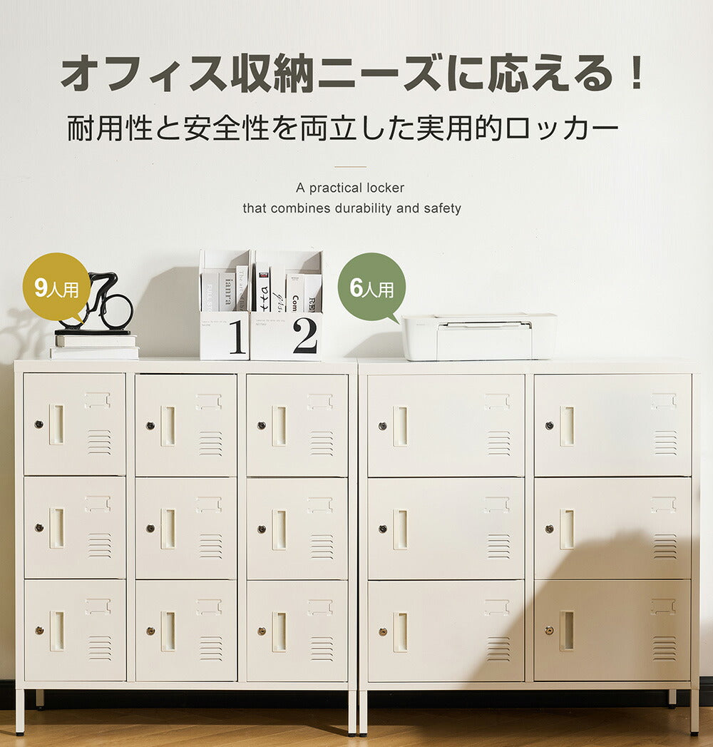 ロッカー 9人用 6人用 スチールロッカー 鍵付き 更衣ロッカー オフィスロッカー 業務用収納 スリム キャビネット オフィス収納 ホワイト 7日内出荷