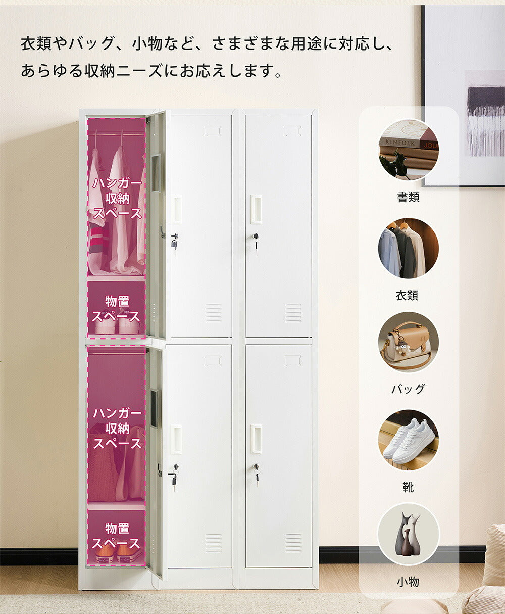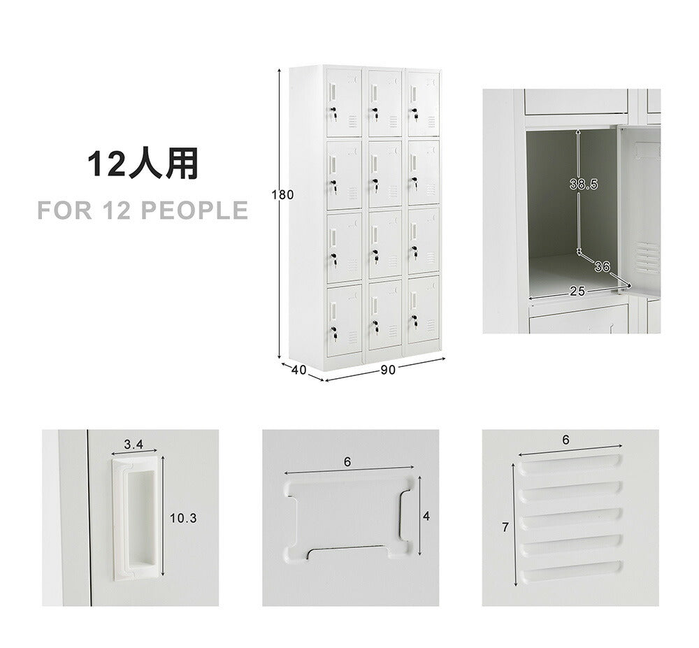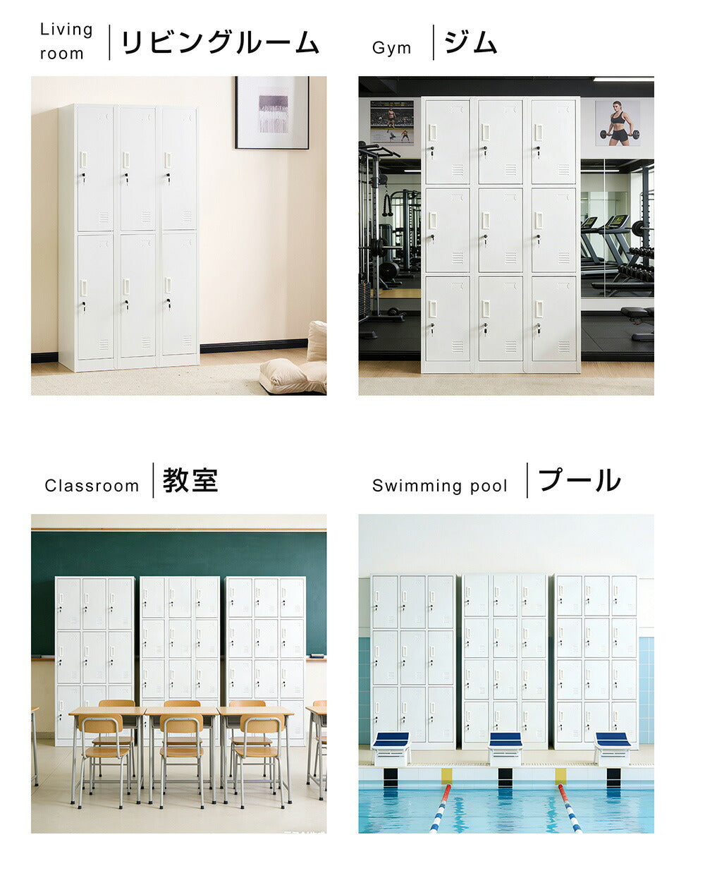 ロッカー スチールロッカー 更衣ロッカー 6人用/9人用/12人用 鍵付き スペアキー付き スリム 業務用 オフィスロッカー 収納 会社 学校 更衣室 ホワイト 7日内出荷