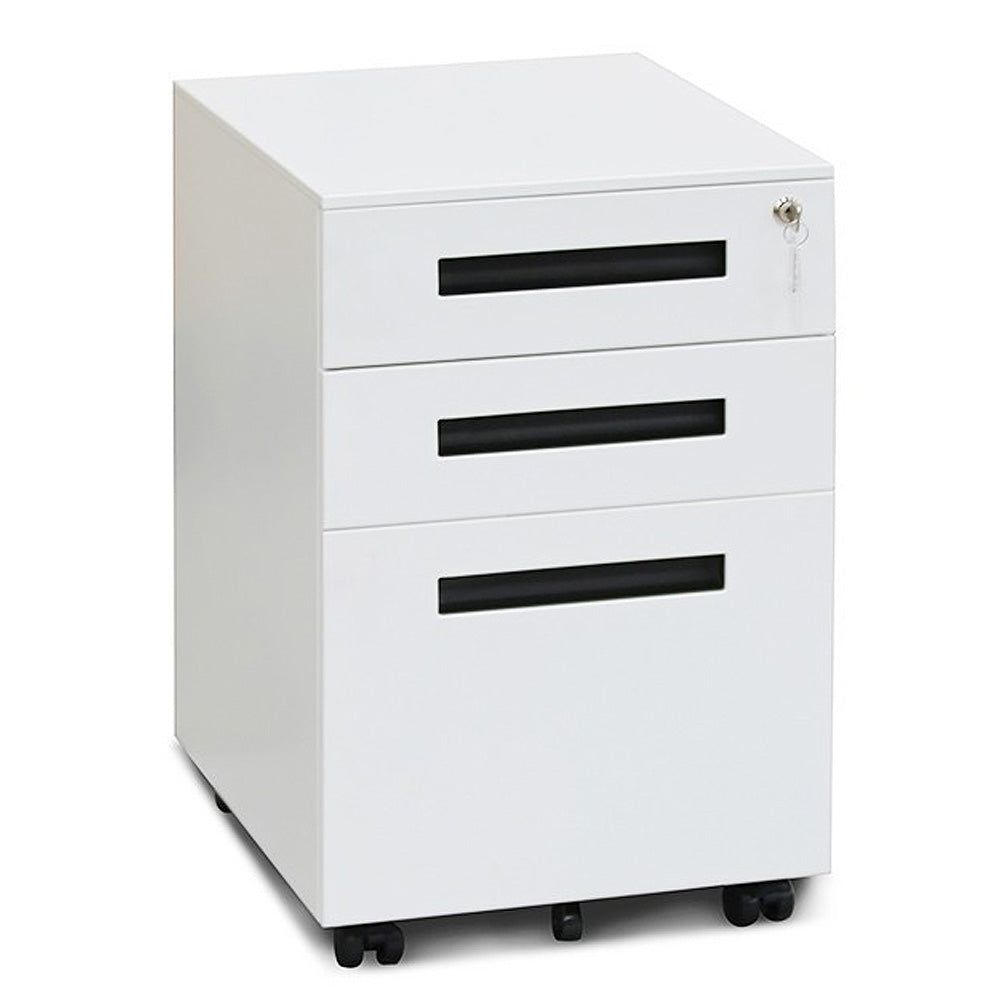上下3段の引き出し設計により書類や文房具、小物などを効率よく分類収納でき、デスク周りをすっきり整理できます。