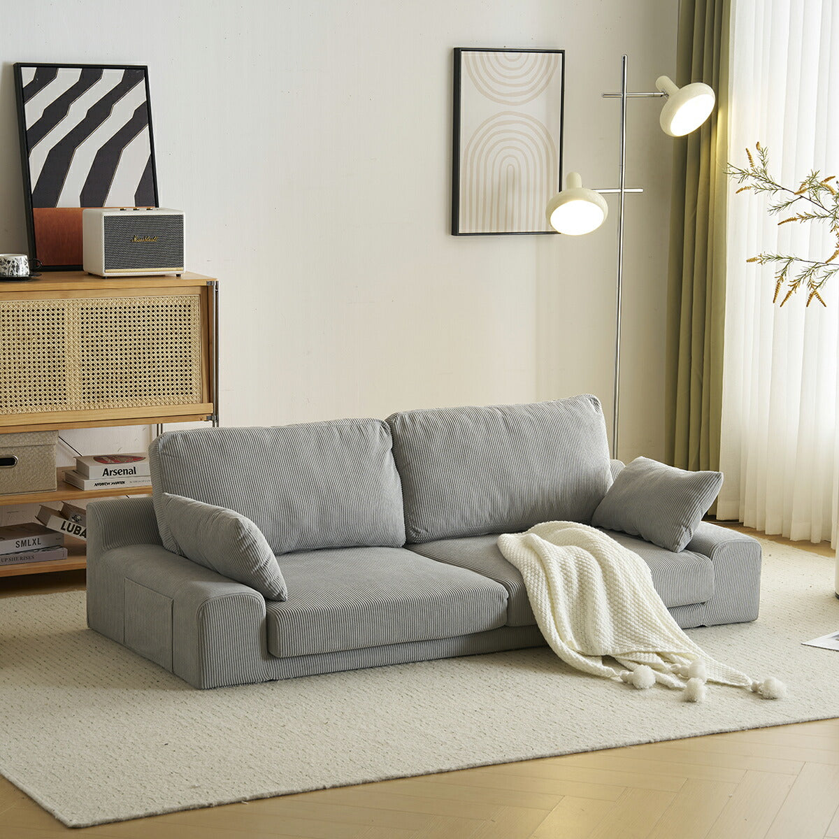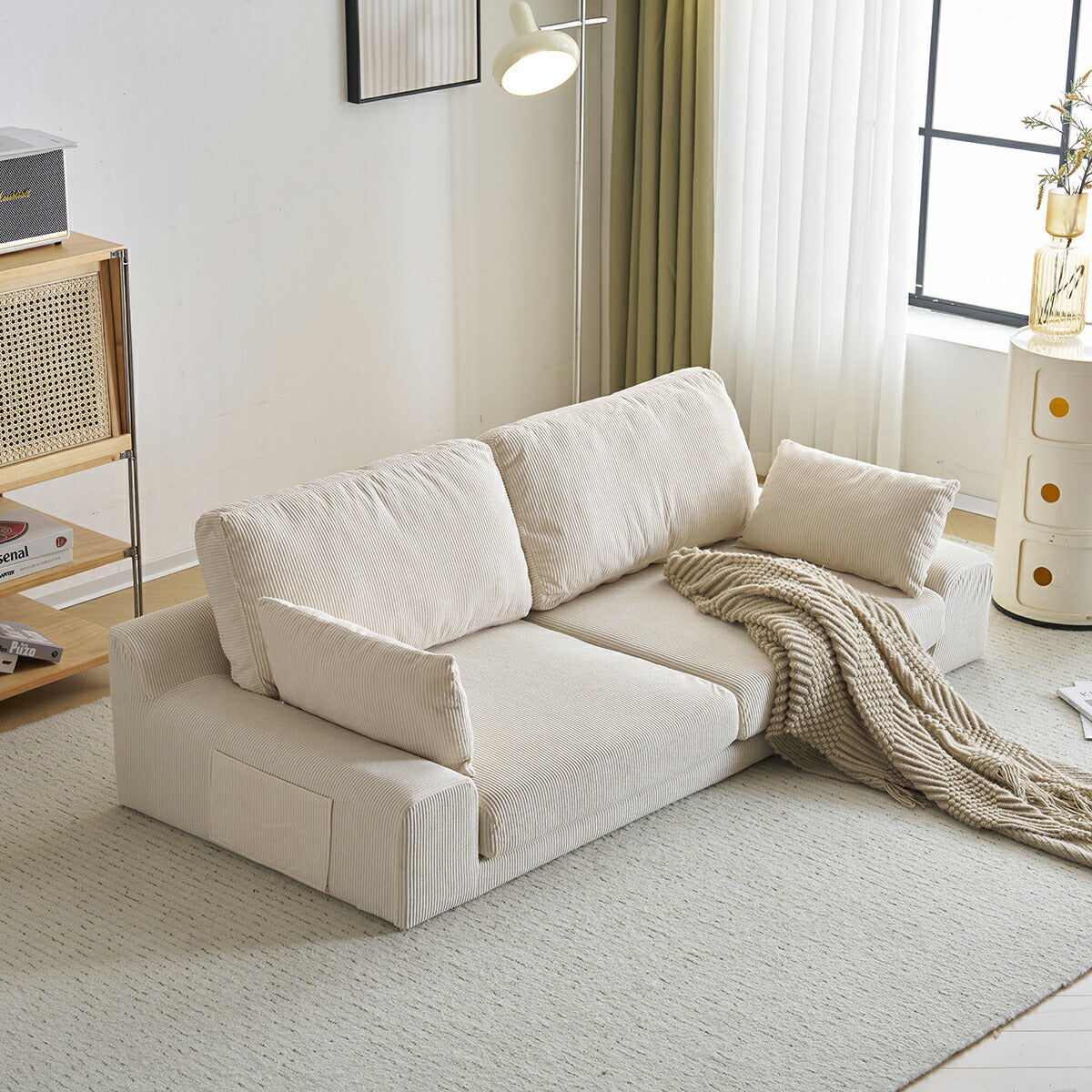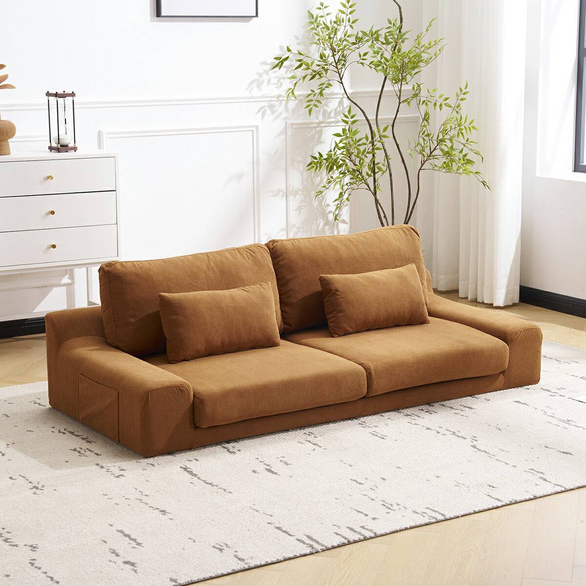 ◆商品説明 ■POINT1 ゆったりくつろげる2人掛けサイズ 横幅約167cm、座面奥行約62.5cmと、一般的な2人掛けソファよりゆとりのある設計。背もたれ高さ約36cmで、腕を預けたり寄りかかったりしやすく、リラックスした姿勢でくつろげます。 ■POINT2 簡単組立で一人暮らしにも安心 左右2つの座面を底部のバックルで連結し、カバーを取り付けるだけのシンプル構造。短時間で組み立てができ、一人暮らしの方にも扱いやすい仕様です。 ■POINT3 圧迫感のないシンプルデザイン 落ち着いた色合いと低めの設計で、お部屋に圧迫感を与えにくいデザイン。直線的でシンプルなフォルムは、さまざまなインテリアに自然に馴染みます。 ■POINT4 洗濯できて清潔に使える布カバー カバーは取り外して洗濯可能。ソファ本体やクッションと分けてお手入れでき、いつでも清潔な状態を保てます。 ■POINT5 便利なクッション&サイドポケット付き 付属クッションは枕や腰当てとして使えるほか、読書時の姿勢調整にも便利。サイドポケットには雑誌や本を収納でき、くつろぎ時間を快適にサポートします。 |
