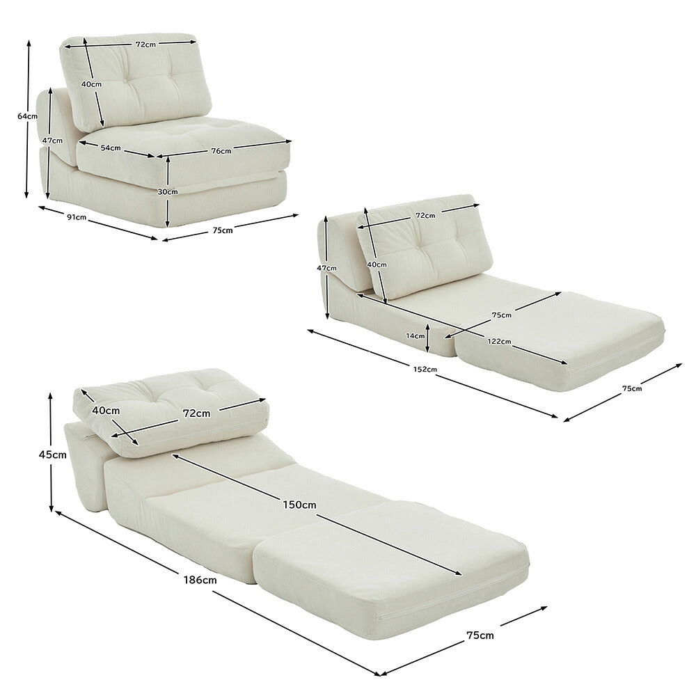 折りたたみ ソファベッド 1人掛け 幅75cm リクライニング フロアソファ コンパクト シングル ソファチェア ベッドチェア 多機能 シェニール生地 一人暮らし 来客用 ワンルーム 省スペース 7日内出荷