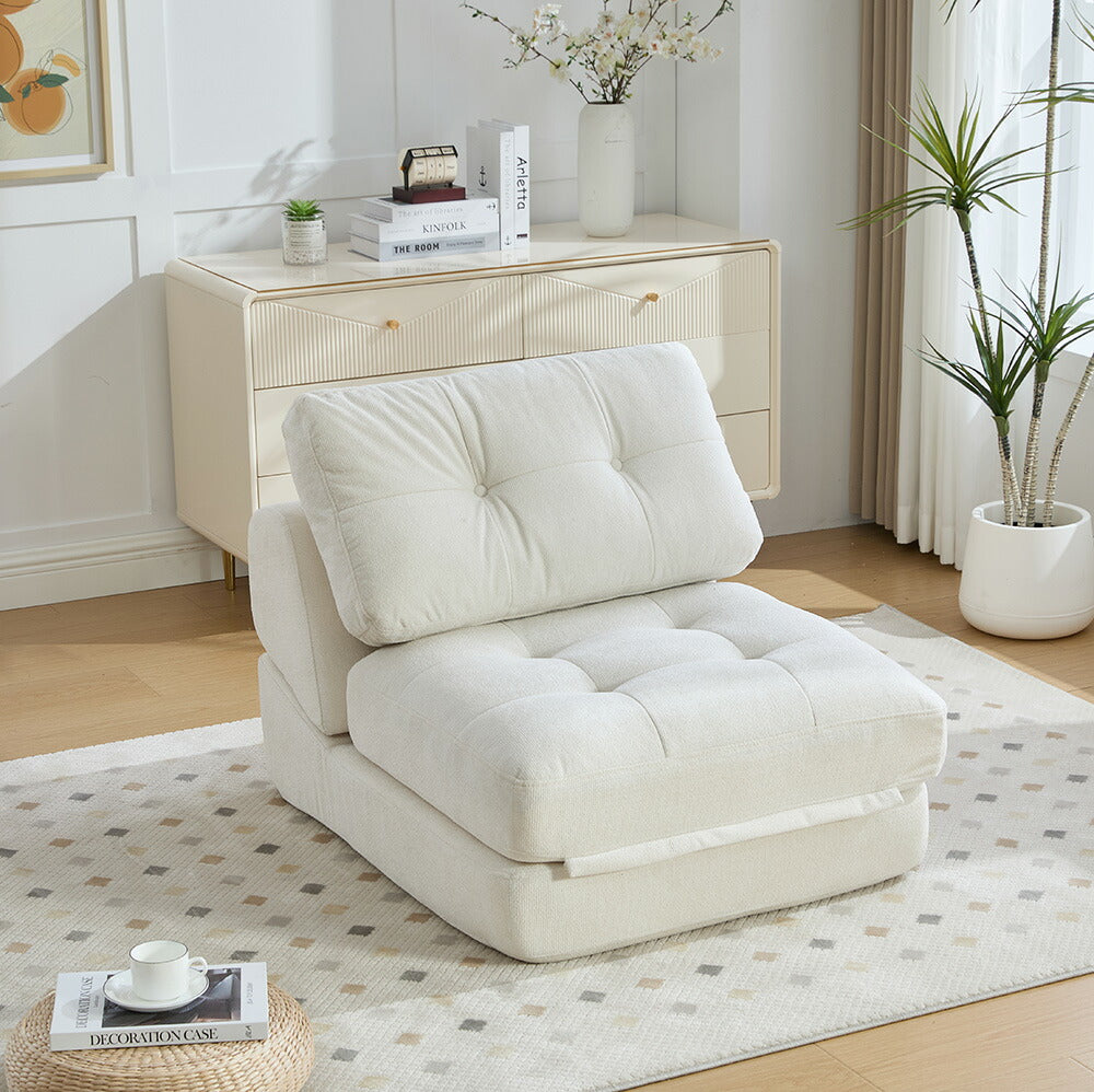 商品名 ソファーベッド 商品番号 djyc-sofa-062 生産国 中国 組立状態 完成品 素材 ファブリック サイズ(約) ・75cm×91cm×64cm ポイント ◆商品説明 ■POINT1 折りたたみ式で形を変えて使える多機能設計 ソファ・リクライニングチェア・簡易ベッドとして使い分け可能な折りたたみ構造。生活シーンに応じて自由に形状を変えられる実用性の高い仕様です。 ■POINT2 幅約75cmのコンパクトな1人掛けサイズ 省スペースでも設置しやすいサイズ感でワンルームや一人暮らしの空間にも取り入れやすい設計。圧迫感を抑えながら快適な座り場所を確保できます。 ■POINT3 ゆったりくつろげるフロアソファ仕様 床に直接置いて使えるフロアタイプで、自然な姿勢でくつろぎやすいスタイル。読書やスマートフォン操作、リラックスタイムに適した使用感です。 ■POINT4 肌触りのよいシェニール生地を採用 柔らかな風合いの生地感が身体にやさしくフィットし、長時間の使用でも快適に過ごしやすい仕上がり。日常使いに適した落ち着いた印象です。 ■POINT5 5年保証付きで安心の品質 長期間使用にも耐える高品質な製品で、5年間の保証が付いており、安心してお使いいただけます。 特記事項 ※こちらの商品は基本的に玄関先でのお渡しとなります。 ※モニターにより実際の色と異なる場合がございます。 ※予告なくデザインや素材変更する場合がございます。 ※予告なく在庫切れになる場合がございます。 ※製造時期により、同シリーズであってもやむなく多少の色差が発生してしまう場合がございます。ご了承ください。...