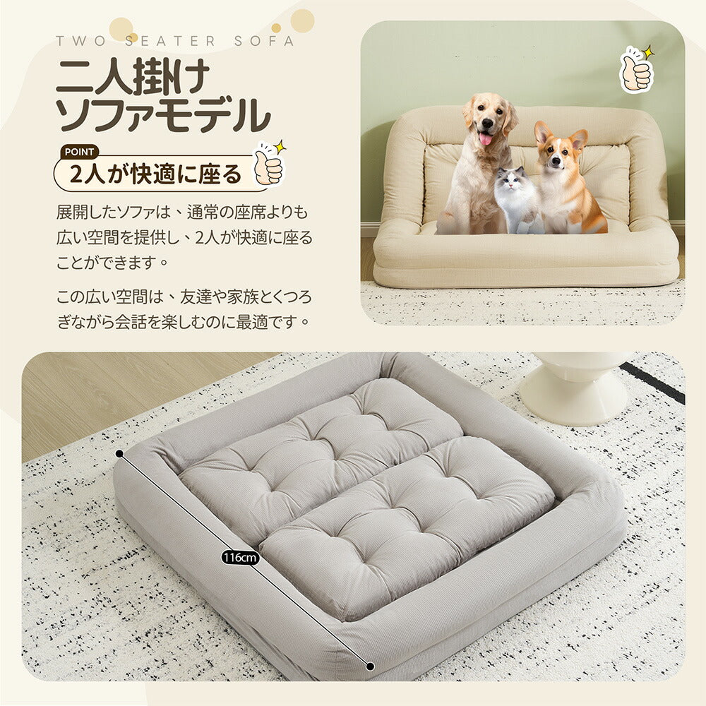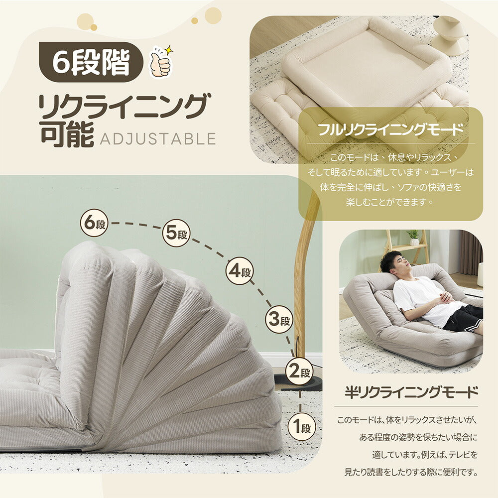 ソファーベッド 2人掛け 座椅子 ローソファ 3WAY 6段階リクライニング 折りたたみ コンパクト フロアソファ 圧力分散 包み込まれる 耐荷重150kg 7日内出荷
