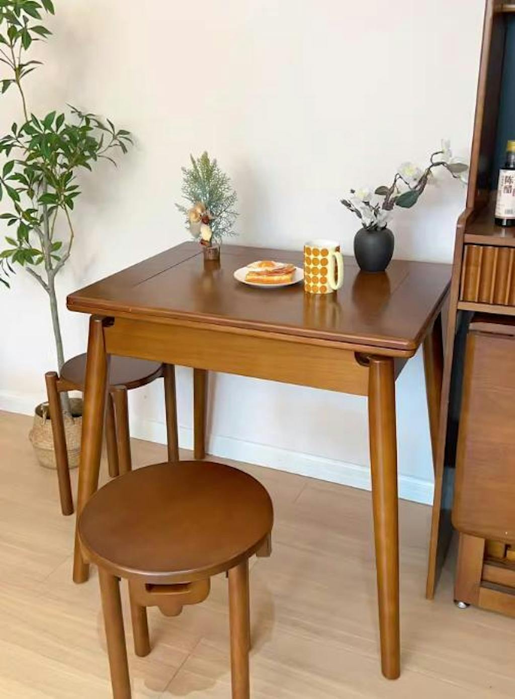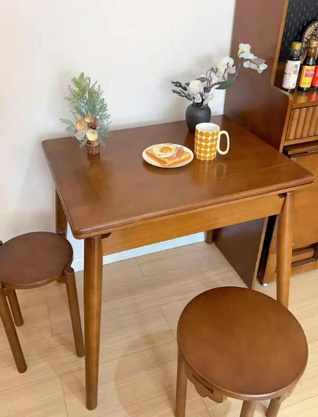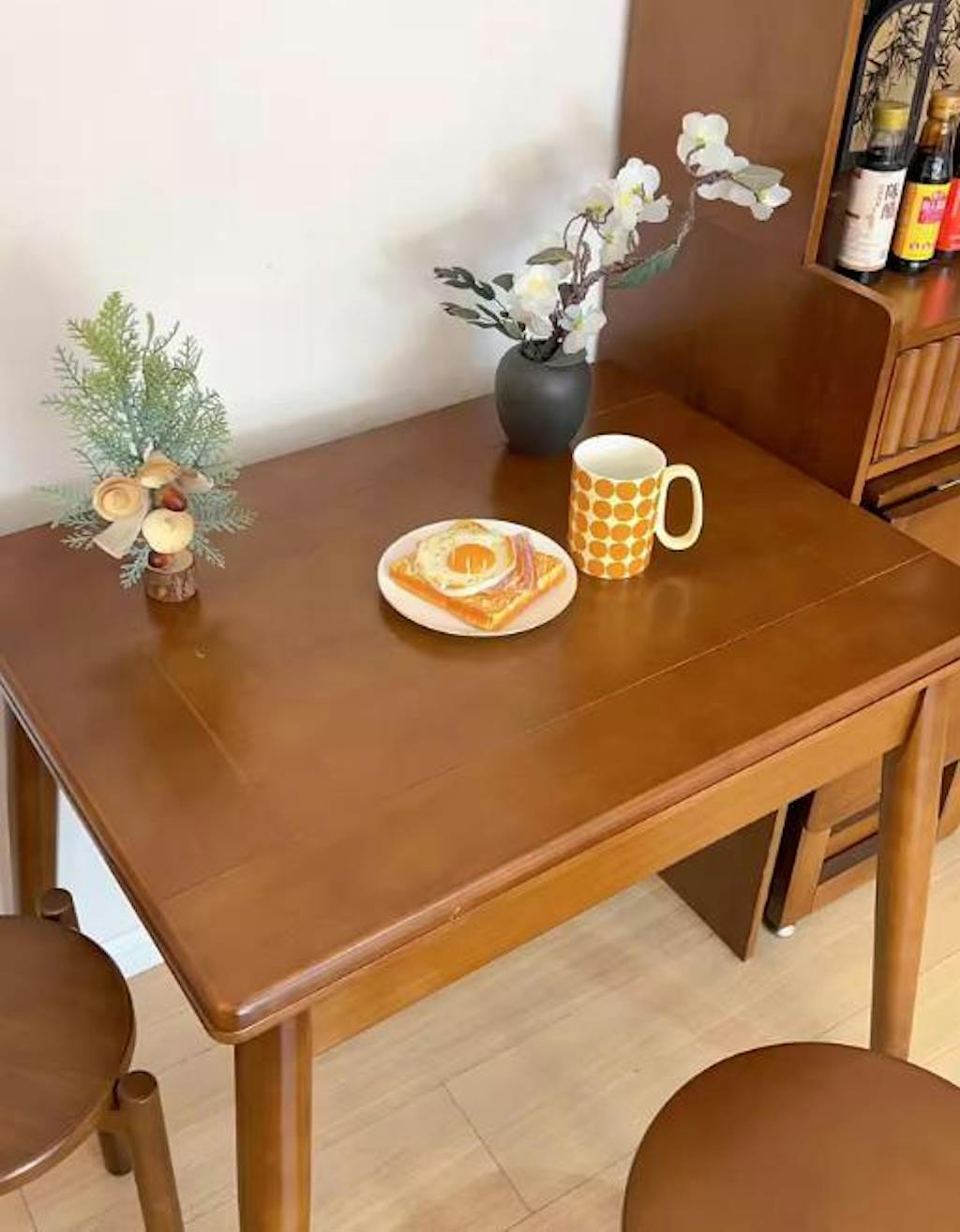 ◆商品説明 ■POINT1 折りたたみ式でコンパクトに使える 普段はコンパクトな状態で使用し、必要に応じて天板をスライド&回転することで、2倍の広さに拡張可能。スペースを有効活用できる優れた構造です。 ■POINT2 シーンに応じて形を変えるテーブル 1~4人の使用を想定した設計で、カフェタイム・食事・作業など多用途に対応。使い方次第で空間が広がります。 ■POINT3 胡桃色で落ち着いた空間演出 高級感のある胡桃色仕上げは、空間に温もりと深みを与えます。和洋問わず多くのインテリアに馴染みやすく、大人の雰囲気を演出します。 ■POINT4 天然木材の温もりある風合い 天板・脚部・幕板すべてに天然木を使用。木目の美しさと質感が魅力で、ナチュラルな空間づくりに最適です。 ■POINT5 スムーズに開閉できるスライド機構 金属スライドレールを採用し、天板の移動が軽くスムーズ。女性やご年配の方でも簡単に操作できます。 ■POINT6 天板の展開構造が便利 天板を外に推して回転すれば、あっという間に広いテーブルに早変わり。見た目にも楽しく、機能性にも優れています。 ■POINT7 加厚天板でしっかりした安定感 厚みのあるしっかりとした天板構造で、重さのある食器類を置いても安心。日常使いから来客時まで幅広く活躍します。 ■POINT8 補強された幕板で高耐久構造 天板下の幕板には適切な補強設計が施されており、脚部との接合部をしっかり支えることで、ぐらつきの少ない構造を実現しています。 ■POINT9 美しい一体感のある丸み加工 天板の角や脚部に丸みを持たせたやさしいフォルムで、小さなお子様がいる家庭でも安心。柔らかな印象を与えます。 ■POINT10 5年保証付きで安心の品質 長期間の使用にも耐える高品質な製品で、5年間の保証が付いており、安心してお使いいただけます。 |