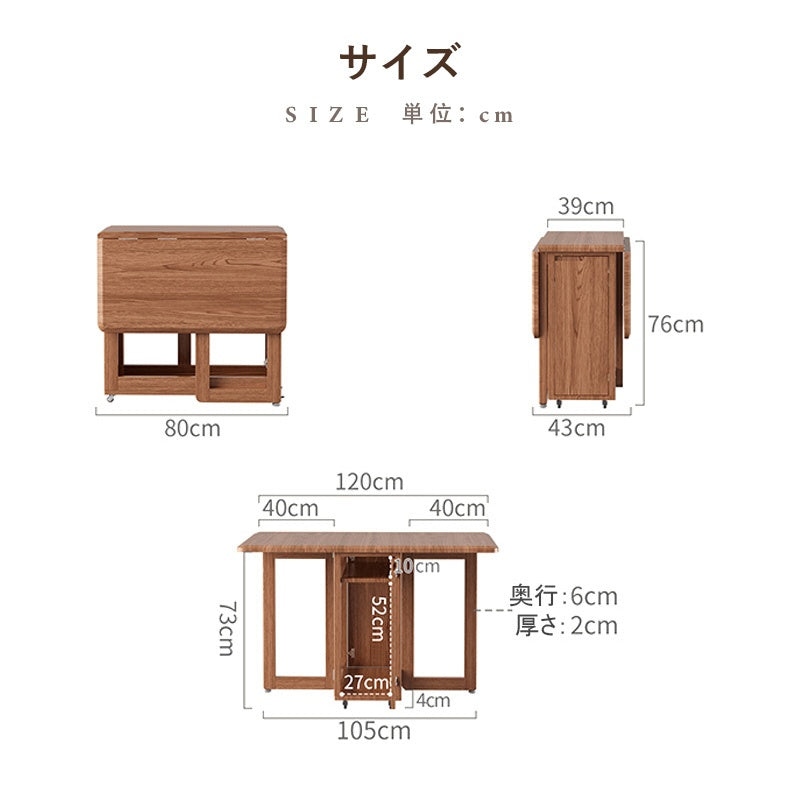 食卓はもちろん、作業台や来客時のサブテーブルとしても活躍。1台で多彩な使い方が楽しめます。