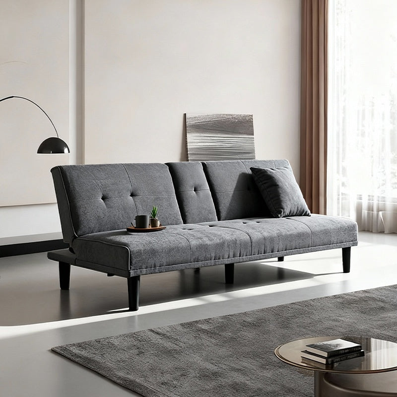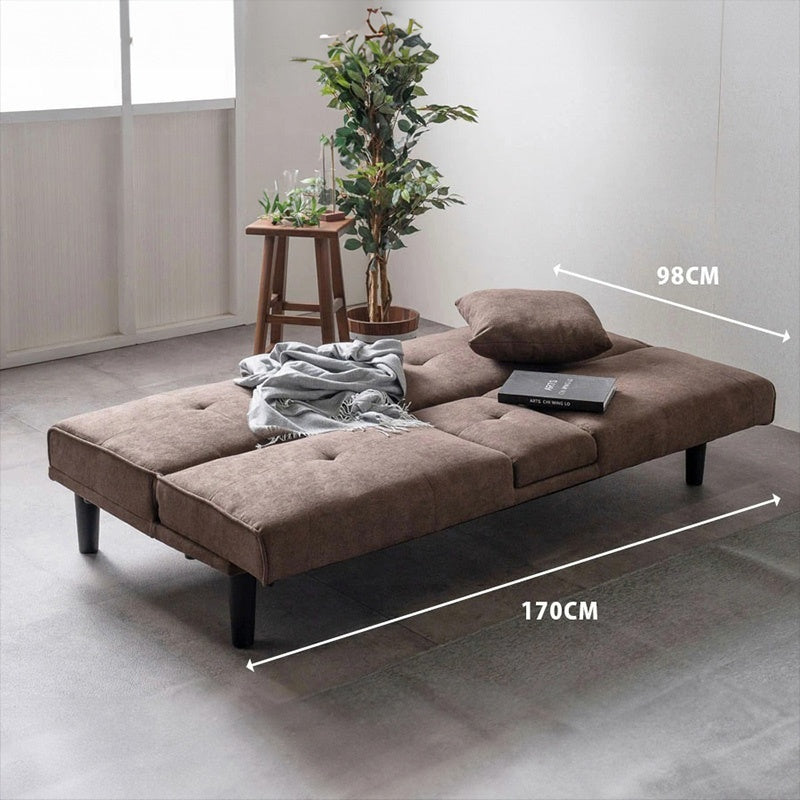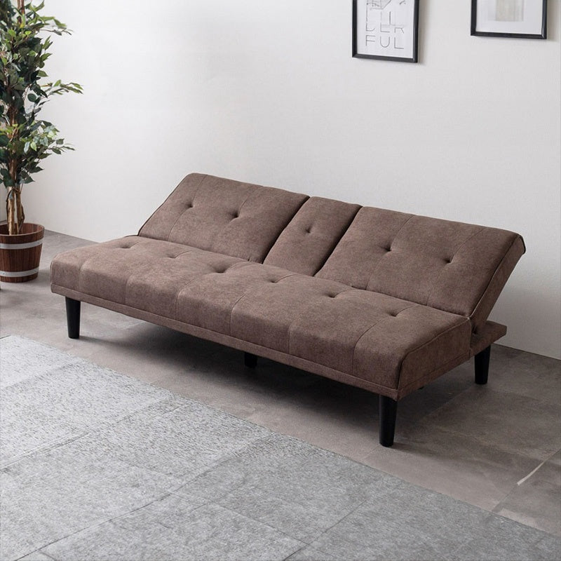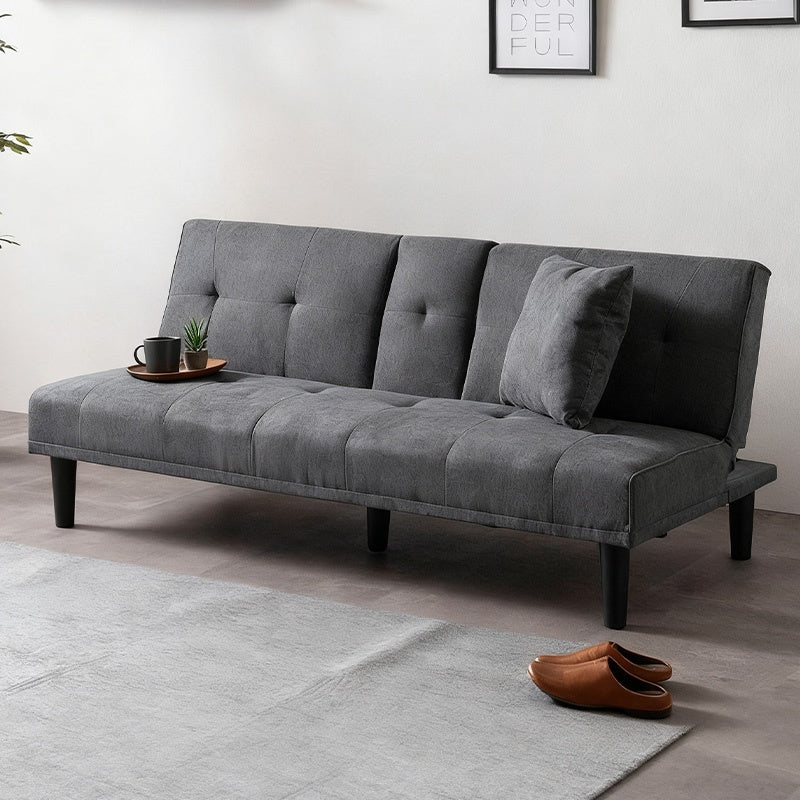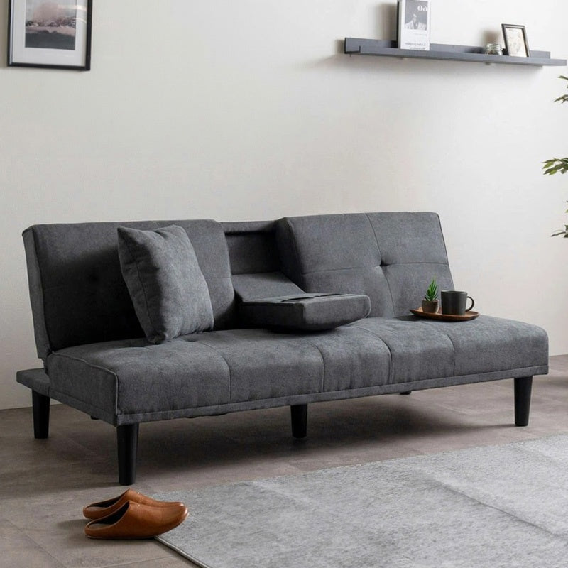 このソファーベッドは、リビングをスタイリッシュに演出する3人掛けのファブリック製ソファーです。ドリンクホルダーが付いているため、リラックスタイムをより快適に過ごせます。リーズナブルな価格でありながら、シングルサイズのソファーベッドとしても使用可能な機能性を備えています。脚付きデザインなのでお掃除がしやすいのもポイントです。リビングにもワンルームにも合うちょうど良いサイズ感です。