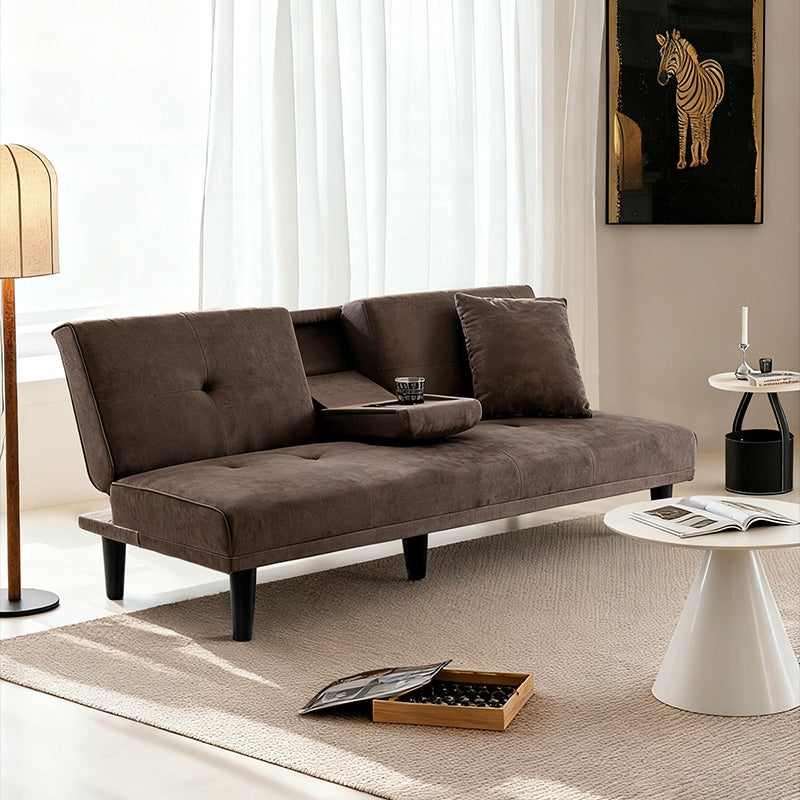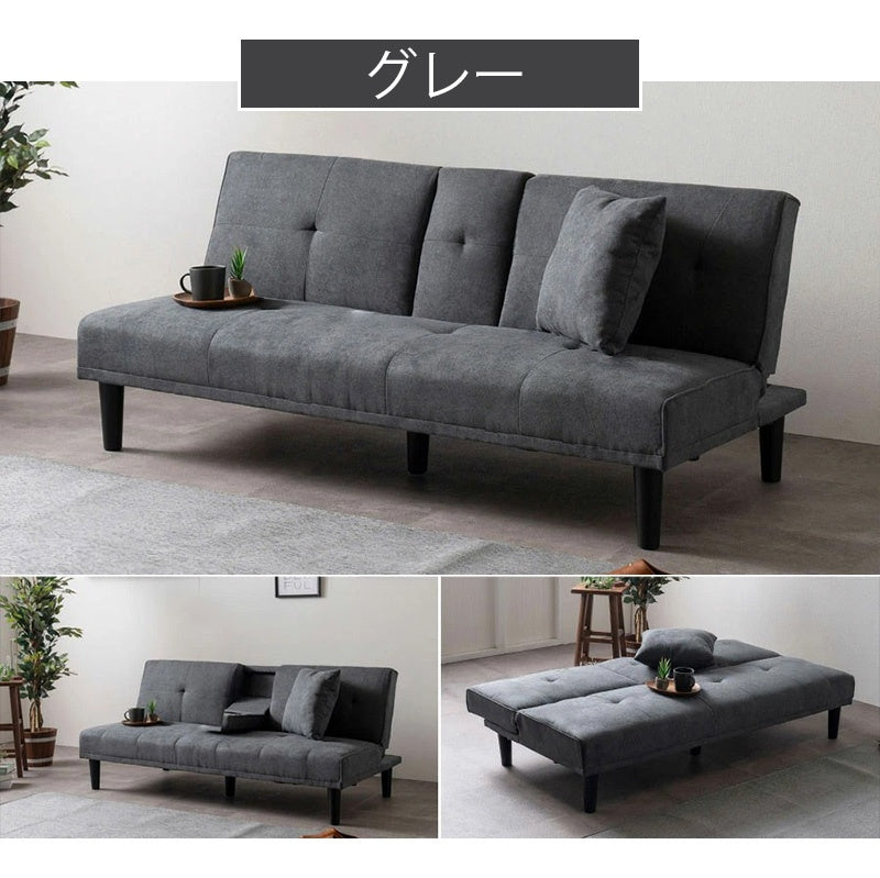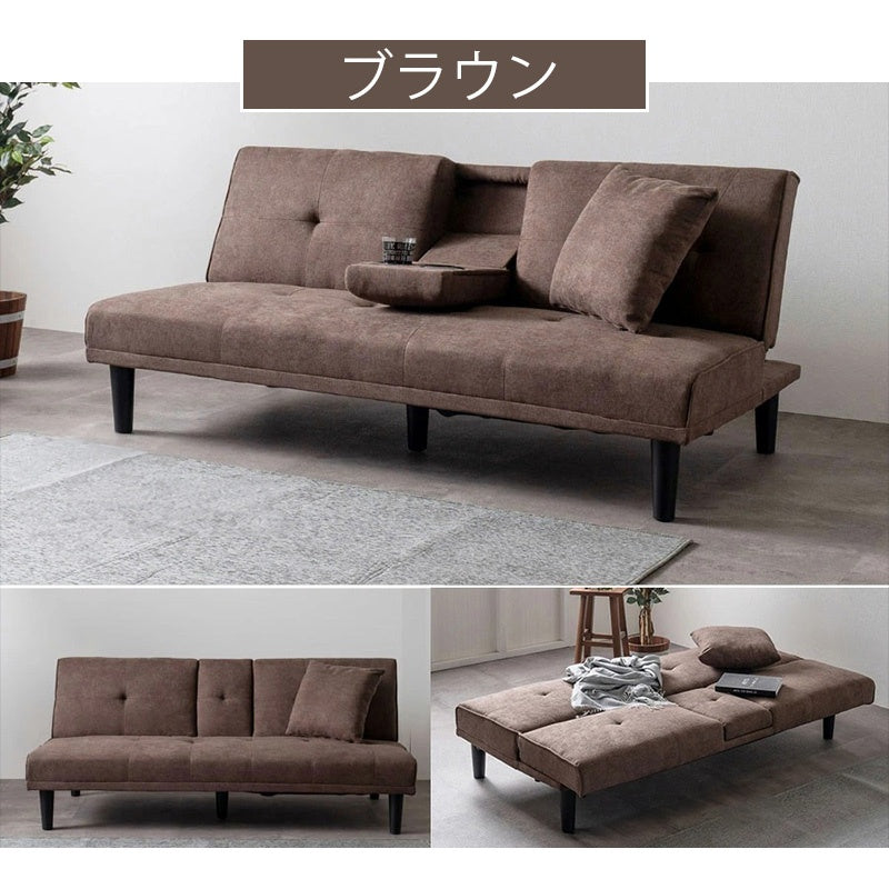 ソファー ソファ おすすめ ソファーベッド 幅170cm ファブリック 3人掛け テーブル付き コンパクト ファブリック ドリンクホルダー付き 脚付き グレー ブラウン