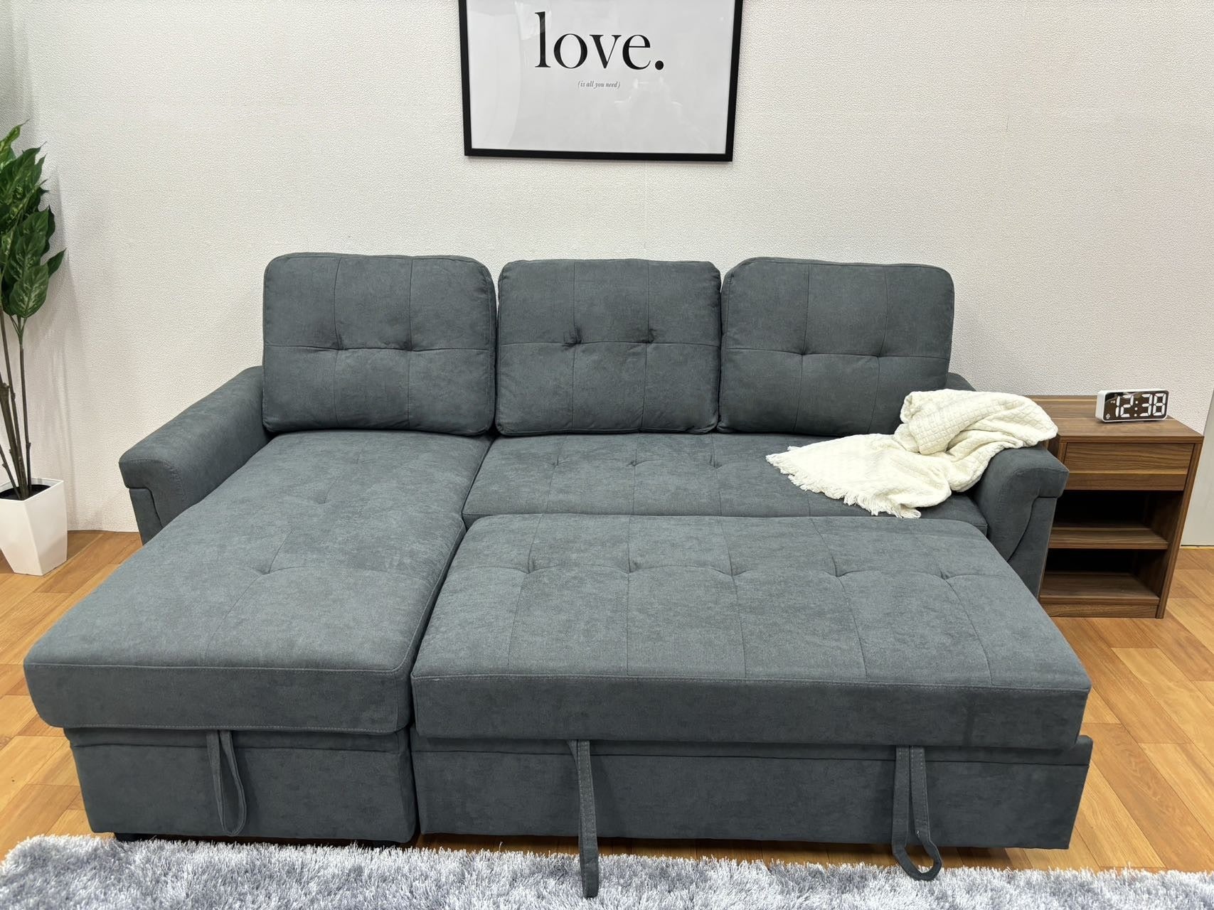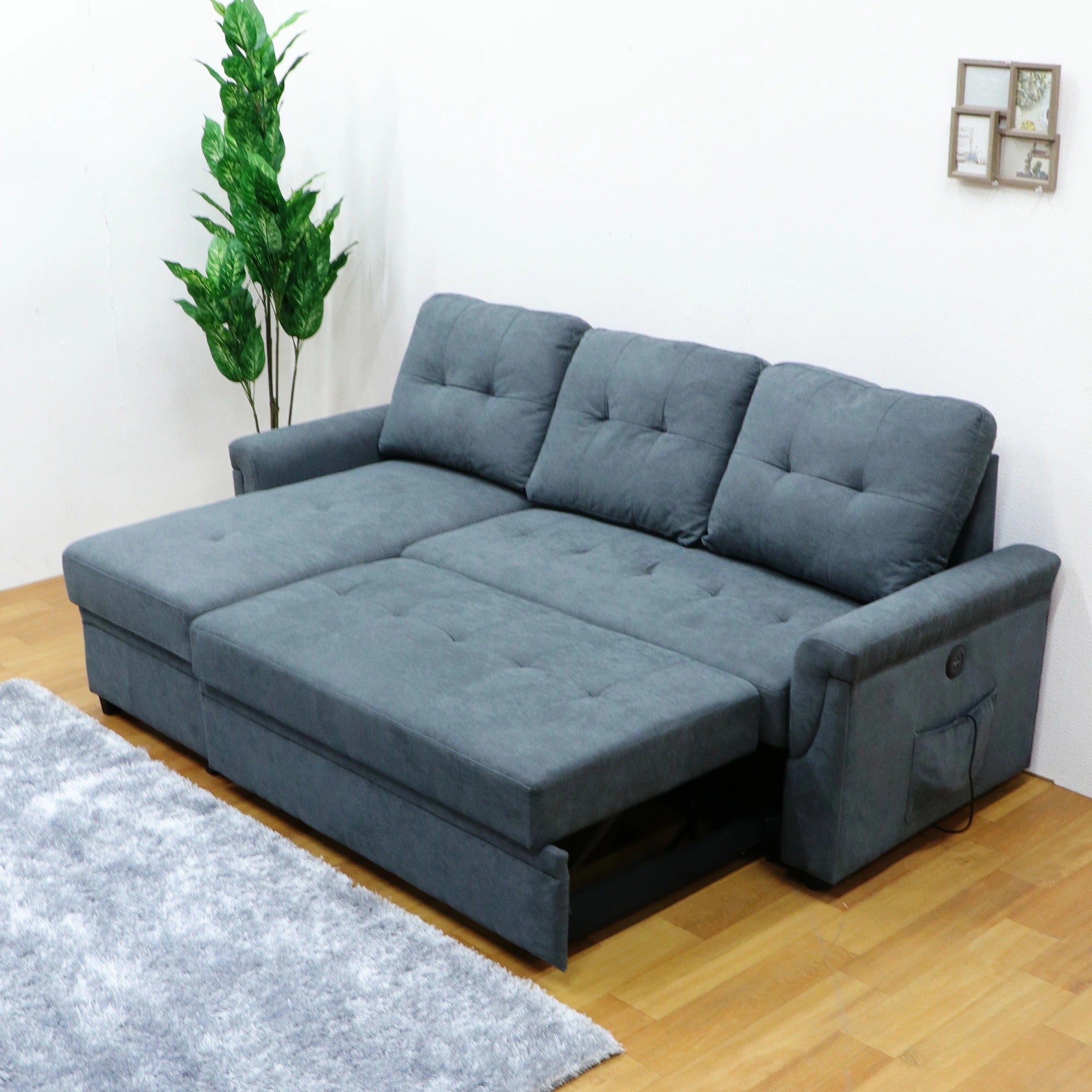 ソファーベッド・収納付き・カウチソファー・3人掛け・布製・グレー・北欧風・リビング・寝室・大きい・usb・おしゃれ・7日内出荷