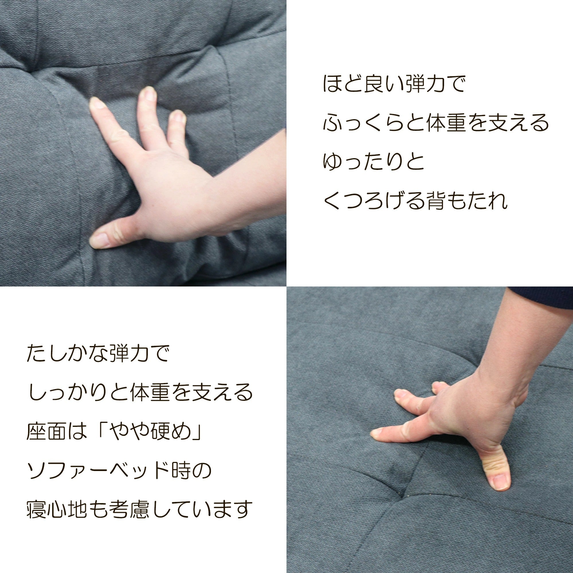 こちらのカウチソファーは、リビングや寝室にぴったりの三人掛けソファベッドです。グレー色のファブリックが北欧風のシンプルで洗練された雰囲気を演出します。座面裏には便利な収納スペースがあり、小物などをすっきりと片付けることができます。おしゃれで機能的なこのソファは、日常生活をより快適にします。